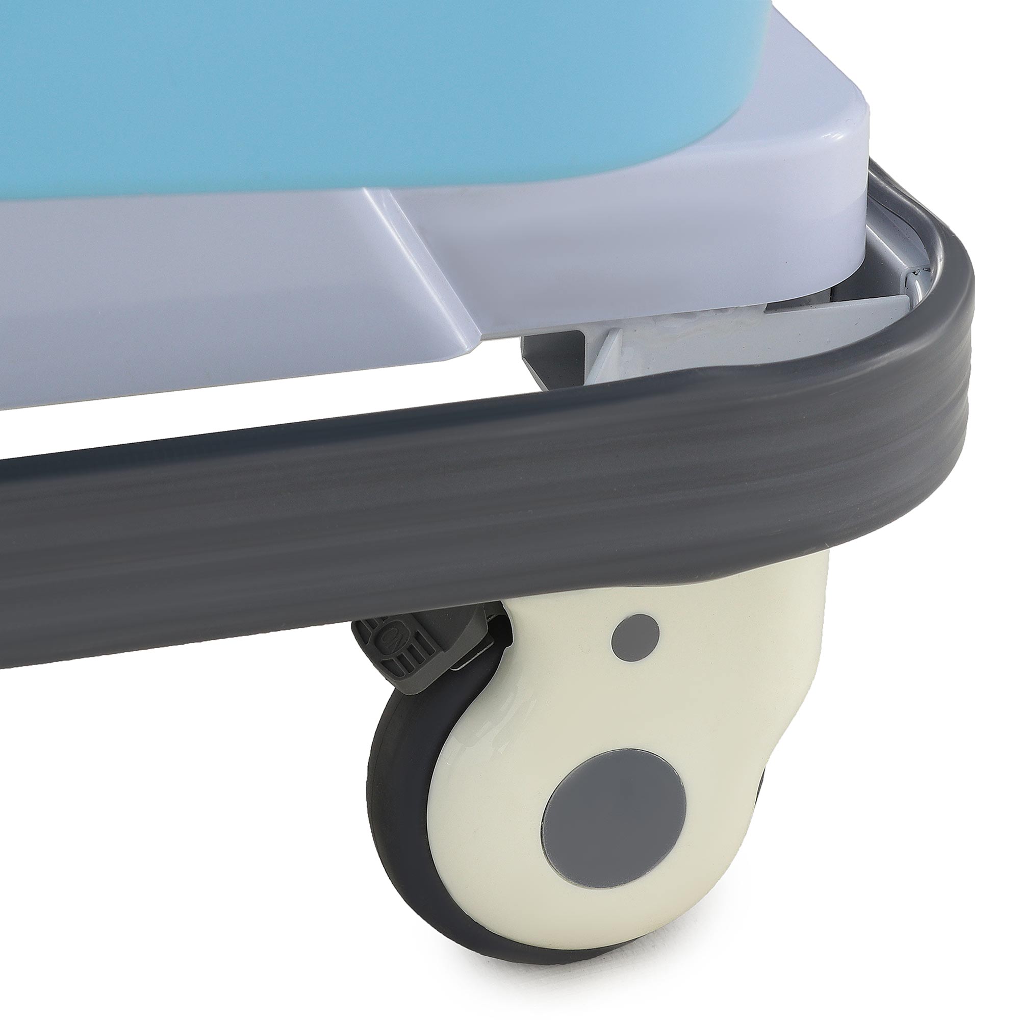 Четыре самоориентирующихся колеса с тормозами гарантируют высокую мобильность, а габариты (965x525x993 мм) и масса (29,7 кг) делают тележку удобной для использования в процедурных кабинетах, поликлиниках и стационарах. Пластиковые поверхности устойчивы к дезинфекции, что обеспечивает гигиеничность.