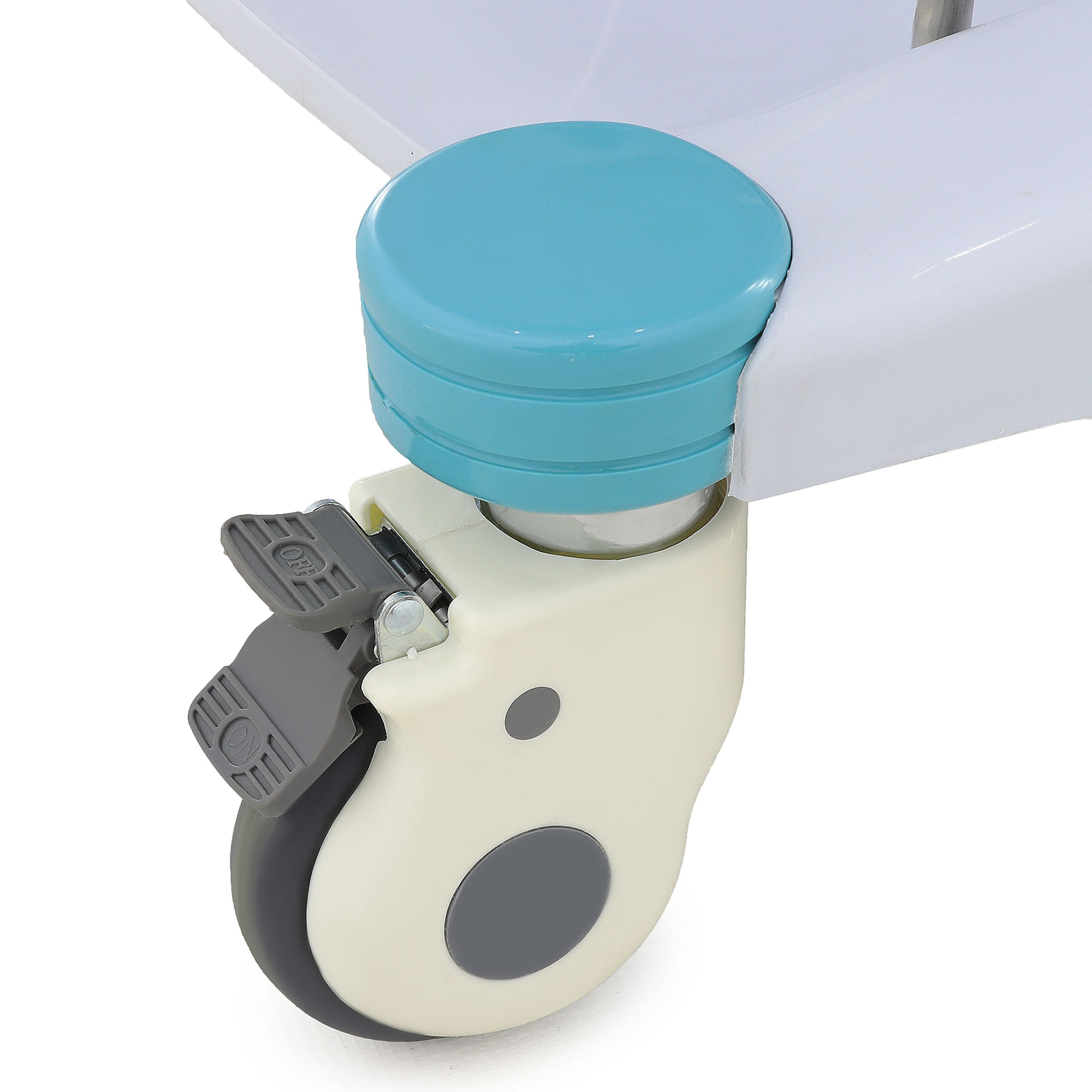 - Мобильность: Четыре колеса _ 99 мм с полиуретановыми шинами и тормозами на двух передних колёсах для плавного перемещения.