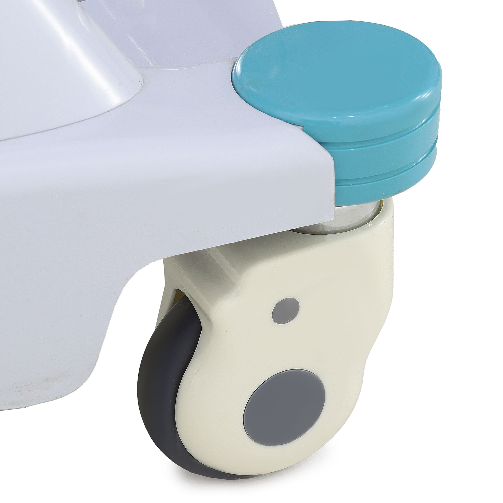 Четыре самоориентирующихся колеса с тормозами и четыре защитных бампера по углам основания обеспечивают мобильность и безопасность. Компактные размеры (600x720x940 мм) и масса (15,9 кг) делают тележку идеальной для использования в ограниченном пространстве процедурных кабинетов, поликлиник и стационаров. Пластиковые поверхности устойчивы к дезинфекции, обеспечивая высокую гигиеничность.