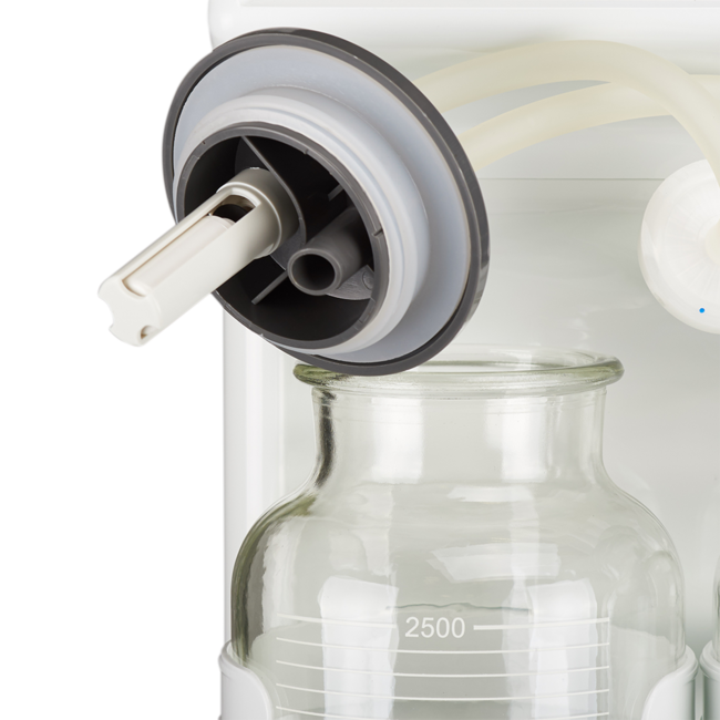 Чтобы не допустить перелив отсасываемой жидкости, на крышке одной из стеклянных емкостей-сборников имеется специальный поплавковый клапан.