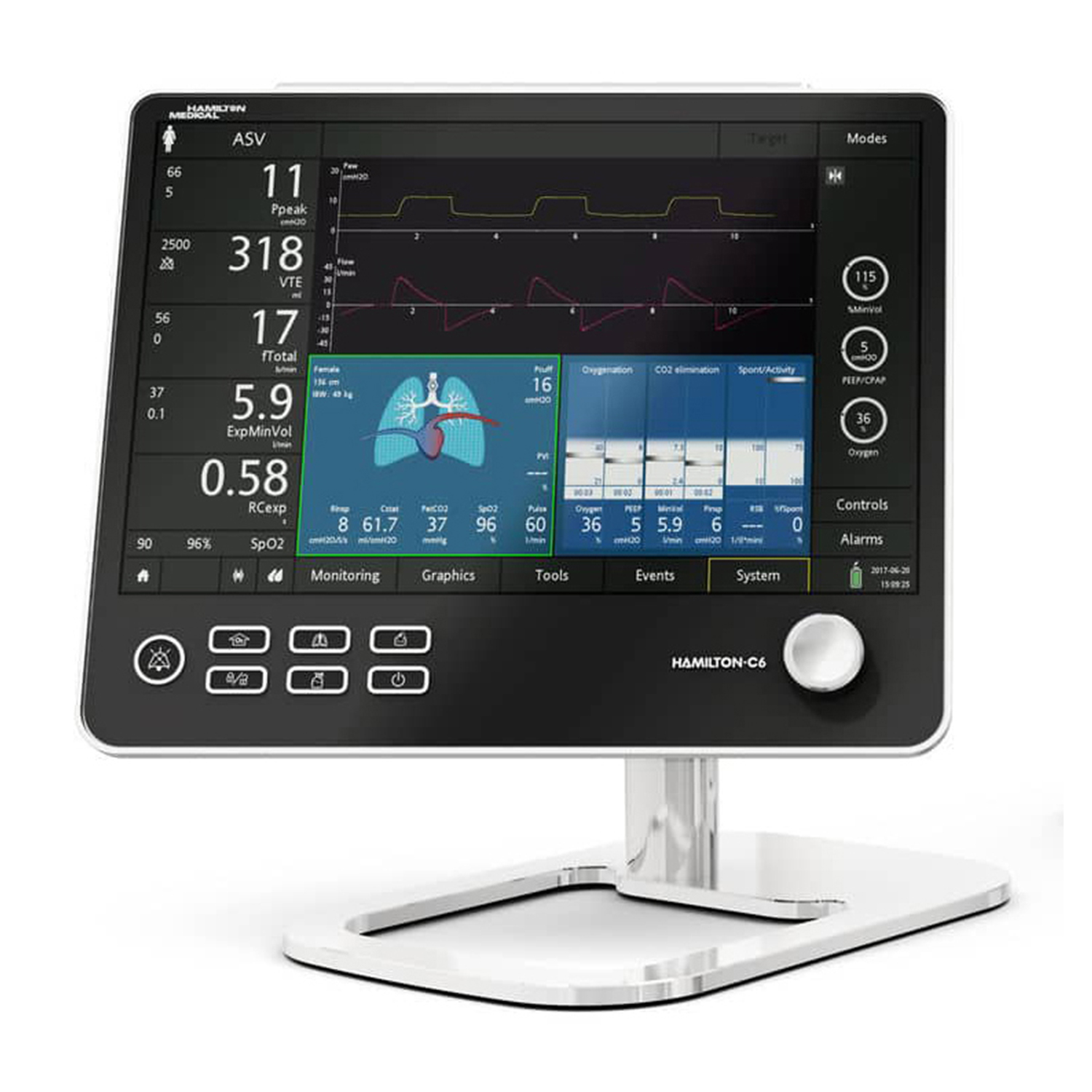 HAMILTON-C6 обеспечивает непрерывный мониторинг и отображение рабочего давления.