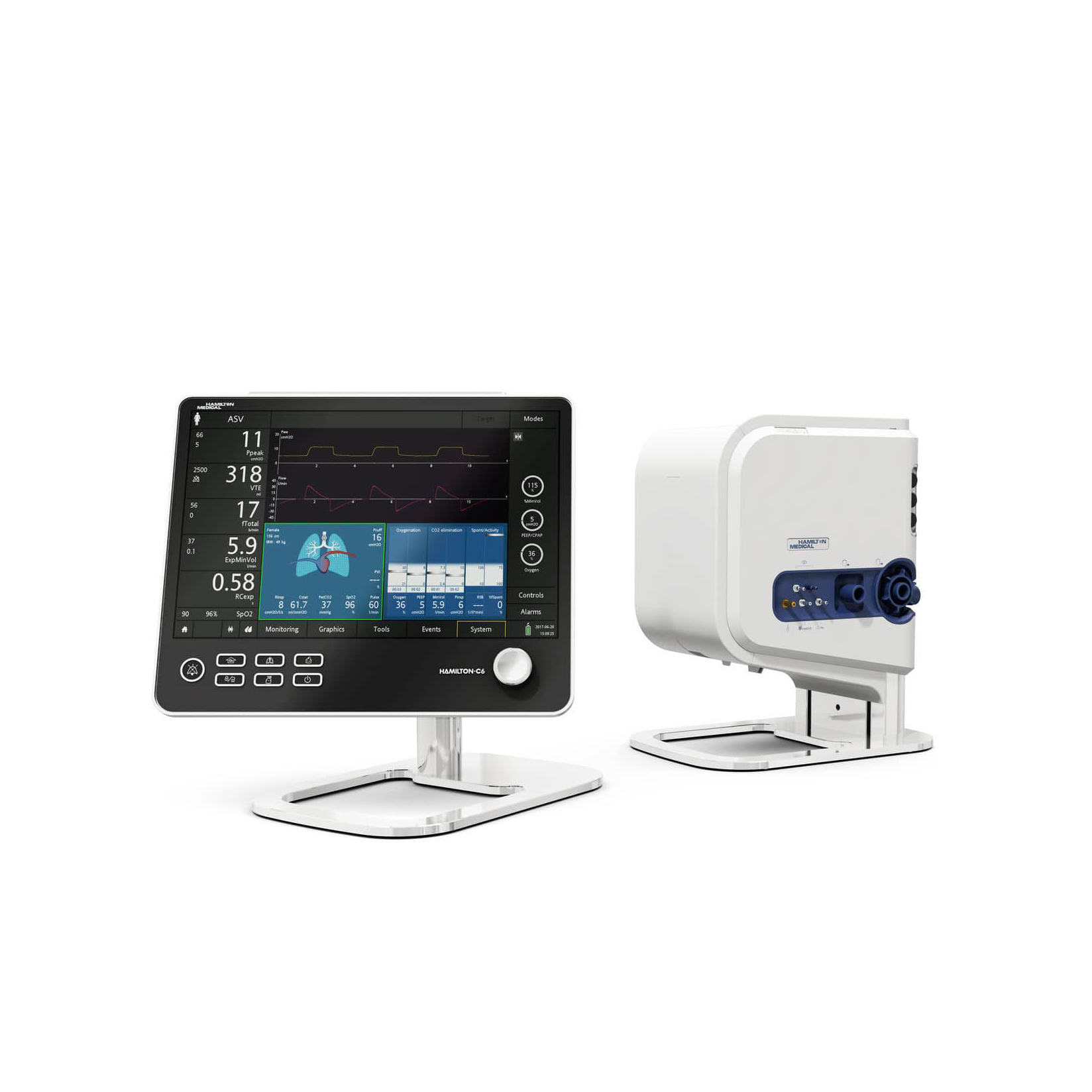 Аппарат ИВЛ HAMILTON-C6 предназначен для проведения эффективной и безопасной искусственной вентиляции легких у взрослых, детей и младенцев. Для последних специально разработан неонатальный проксимальный датчик потока. В диапазоне дыхательного объема поддерживаются настройки вплоть до 2 мл.