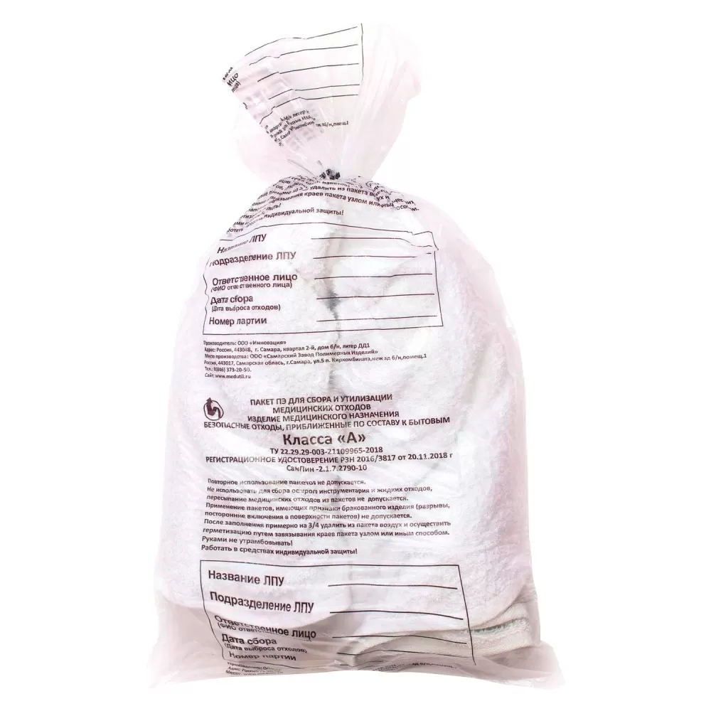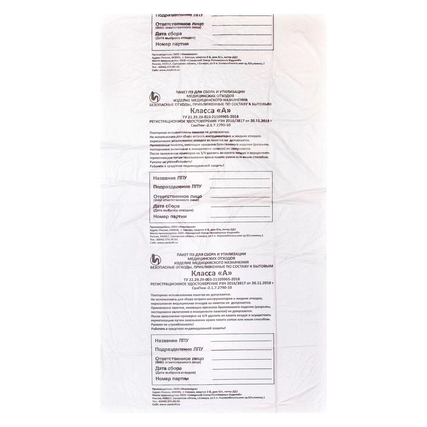 Пакет ПЭ для сбора медицинских отходов класса А.
