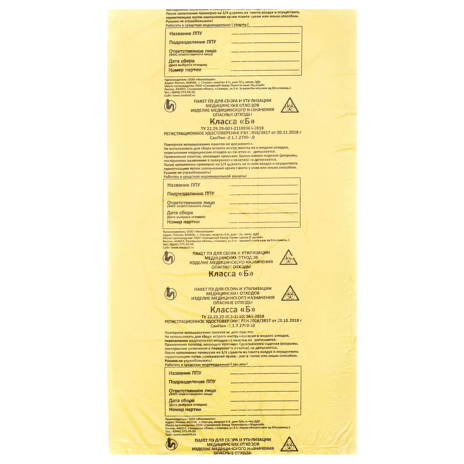 Пакет ПЭ для сбора медицинских отходов класса Б (опасные отходы).