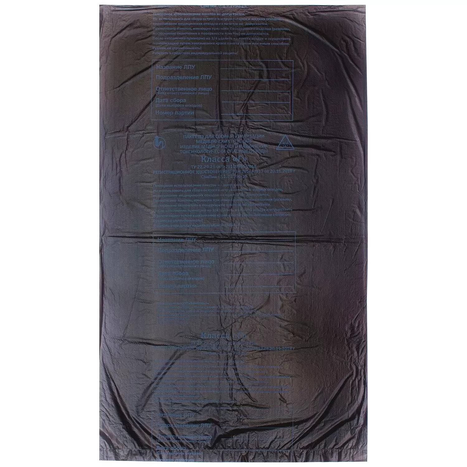 Пакет ПЭ для сбора медицинских отходов класса Г.