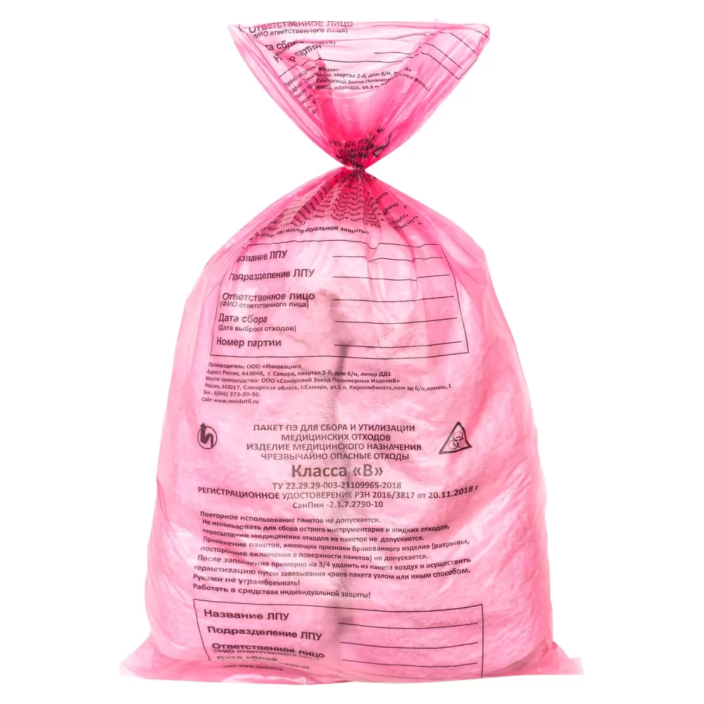 Пакет ПЭ для сбора медицинских отходов класса В (чрезвычайно опасные отходы).