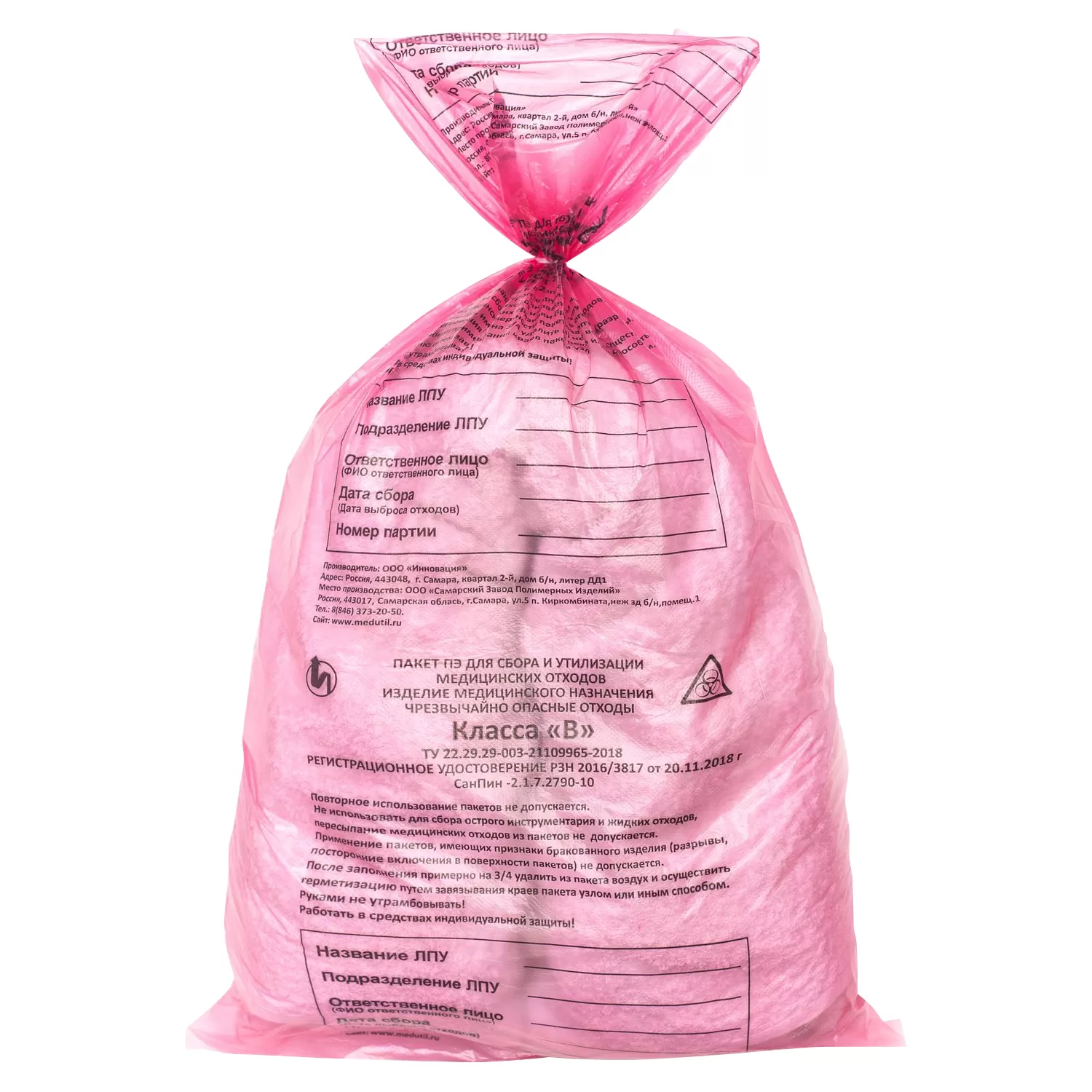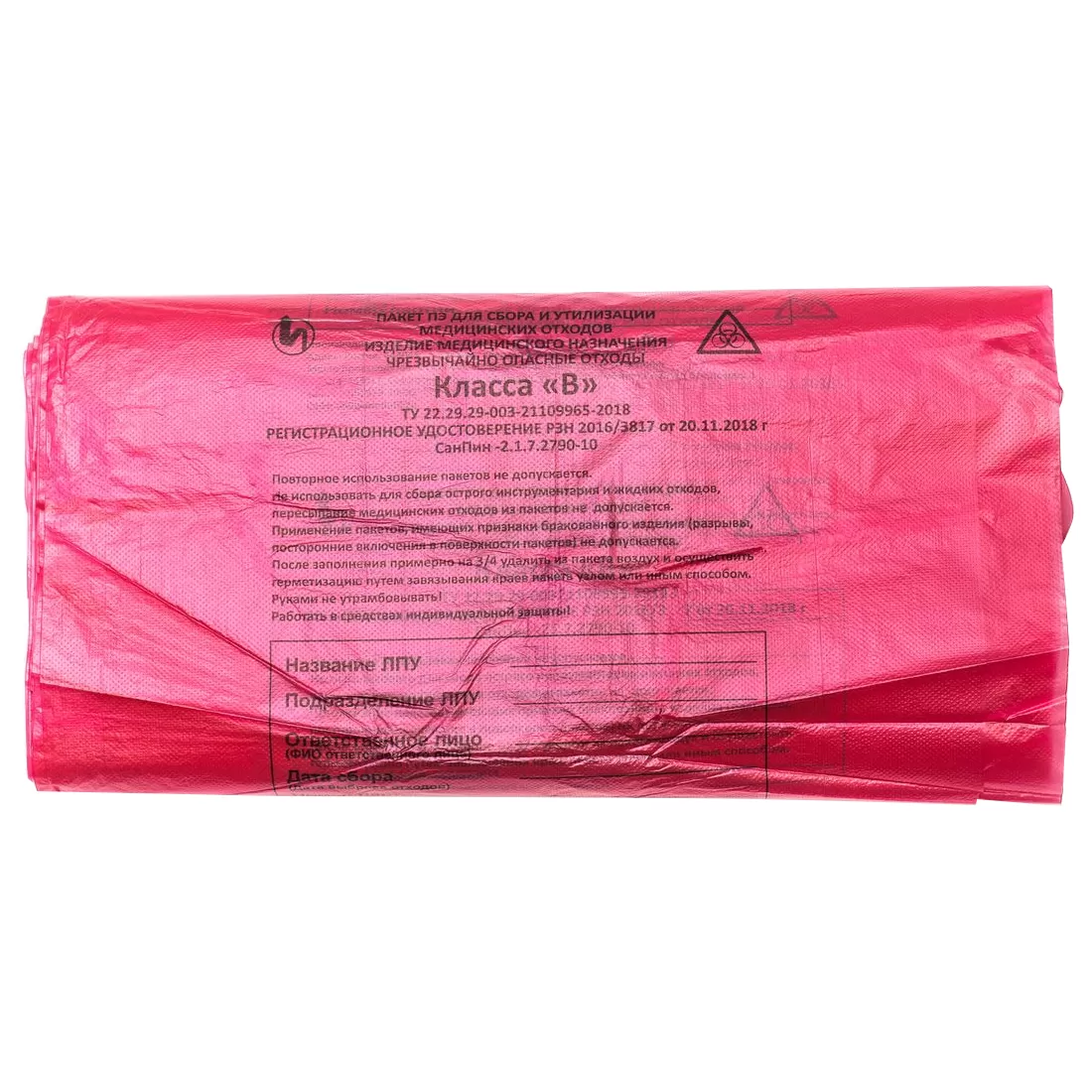 Пакет ПЭ для сбора медицинских отходов класса В (чрезвычайно опасные отходы).