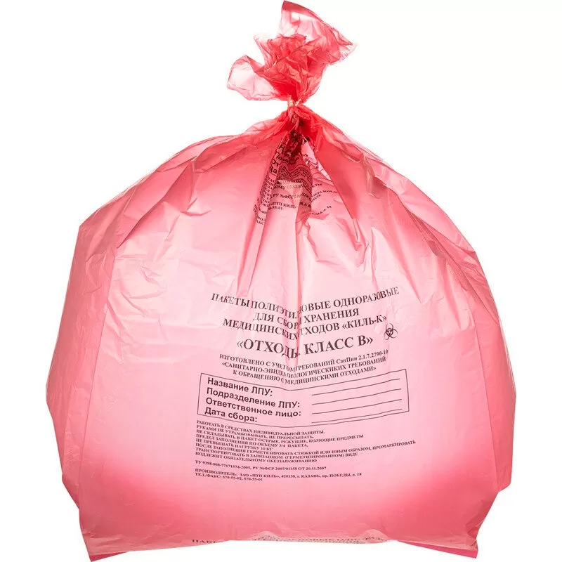 Пакет для медицинских отходов класса В (красный).