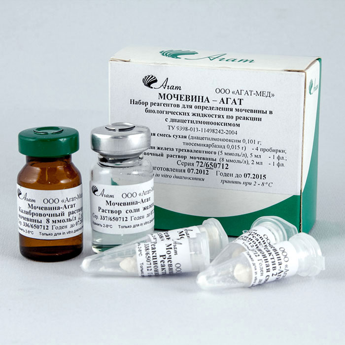 Диагностический набор МОЧЕВИНА АГАТ предназначен для количественного колориметрического определения концентрации мочевины в сыворотке и плазме крови, цельной крови и моче человека диацетилмонооксимным методом в клинико-диагностических и биохимических лабораториях и в научно-исследовательской практике.