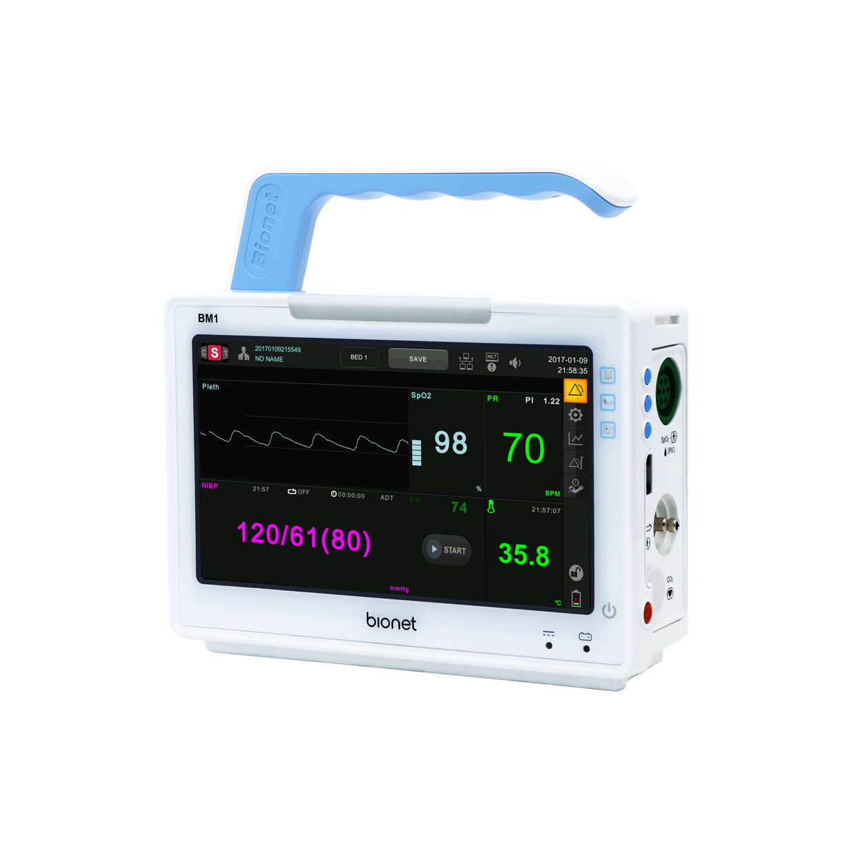 <p><span>Прикроватный монитор Bionet BM1 предназначен для отслеживания текущего состояния пациента. Прибор применяется в палатах интенсивной терапии, кардиологических, реанимационных, педиатрических и неонатальных отделениях, в машинах скорой помощи. Монитор имеет настраиваемый интерфейс на русском языке.</span></p>