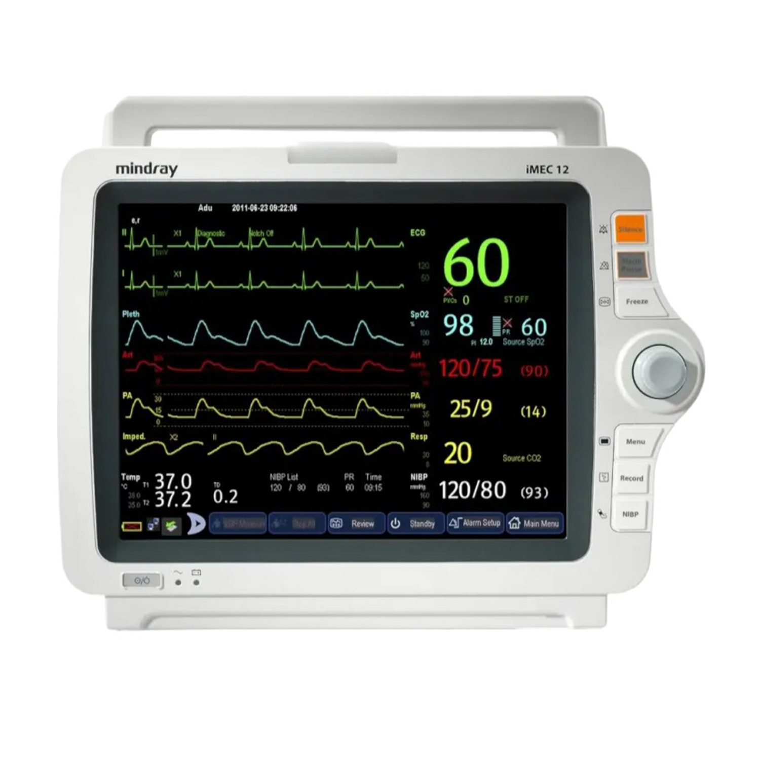 Монитор пациента Mindray iMEC 12 с безвентиляторной конструкцией считается самой старшей моделью данной серии, к тому де этот аппарат обладает расширенным функционалом. Также данный аппарат потребляет меньше электроэнергии, чем многие другие обычные мониторы почти на 50 процентов. Высокая скорость работы возможна за счет моментальной реакции на малейшие изменения в состоянии пациента.