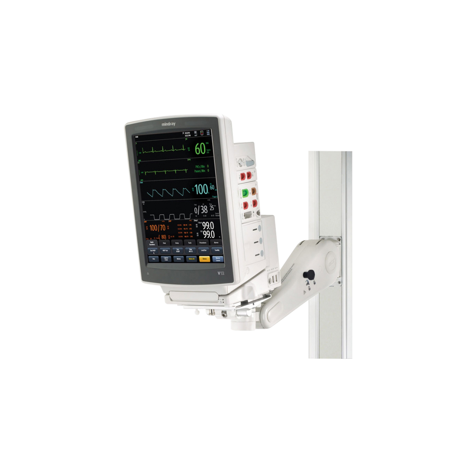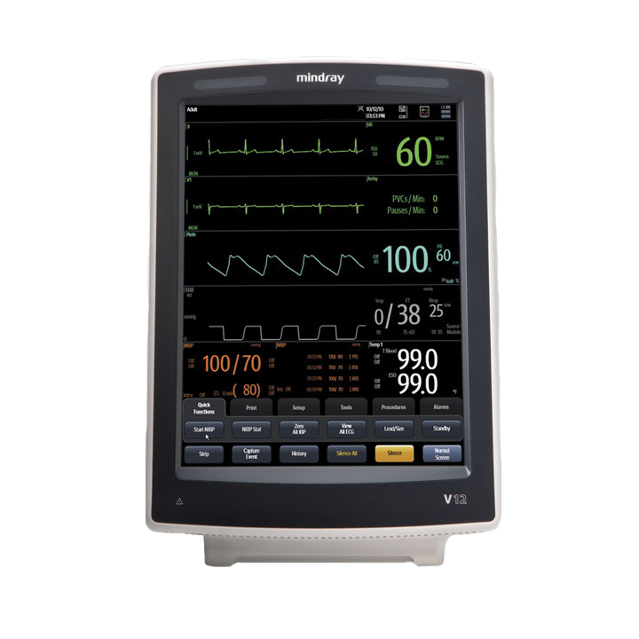<p>Mindray V12 – медицинский диагностический прибор, предназначенный для контроля физиологических параметров у всех групп пациентов. Аппарат может выполнять функцию как прикроватного, так и транспортного монитора. Применяется в палатах различных лечебно-профилактических учреждений.</p>