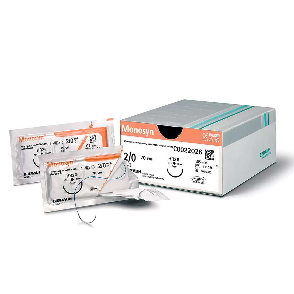 • Моносин (Monosyn) — синтетическая монофиламентная нить со средним сроком рассасывания на основе гликоната. Нить Monosyn доступна в неокрашенном виде для закрытия поверхностных ран и в фиолетовом цвете для лучшей визуализации при работе в глубине раны. Monosyn позволяет осуществлять надежную поддержку мягких тканей на протяжении всего периода заживления.