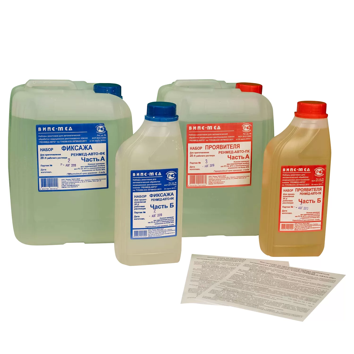 Наборы реактивов для автоматической обработки медицинских рентгеновских пленок «РЕНМЕД-АВТО» предназначены для приготовления рабочих растворов, применяемых при фотографической обработке медицинских рентгеновских пленок в проявочных автоматах рольного типа рентгеновских кабинетов ЛПУ.