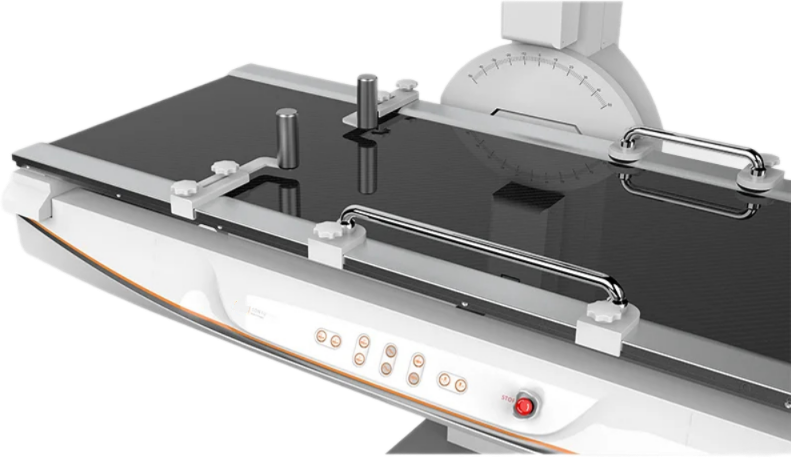 - Поворот рентгенографического ложа на -15°/+ 90° для более гибкого позиционирования рентгенографа.