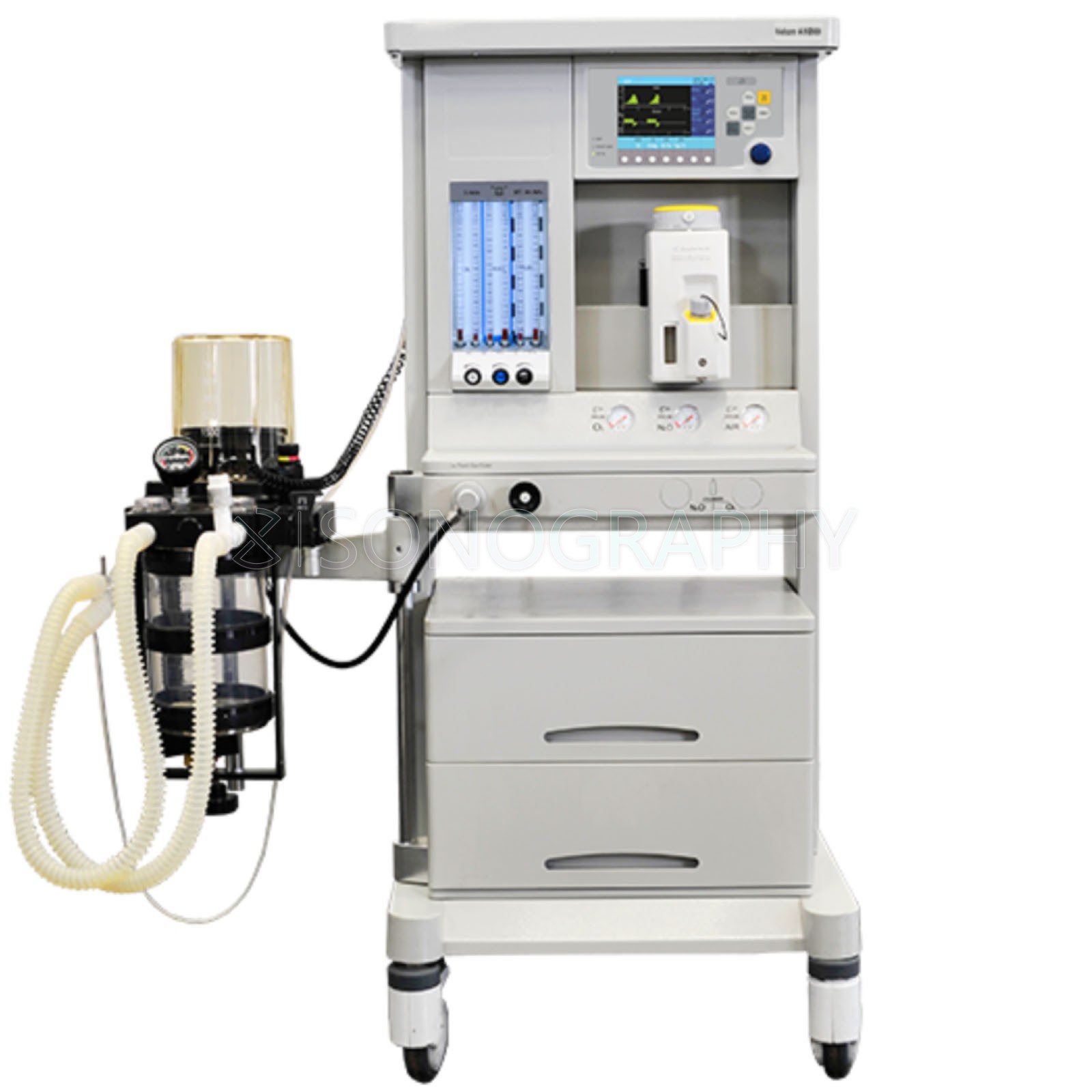 Одновременно с наркозно-дыхательным аппаратом могут быть подключены разнообразные мониторы слежения и системы контроля уровня анестезиологических газов.