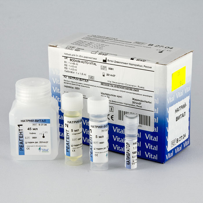 Диагностический набор НАТРИЙ-ВИТАЛ (для автоматических анадизаторов) для количественного определения концентрации натрия в сыворотке крови псевдокинетическим (двухточечным) методом.