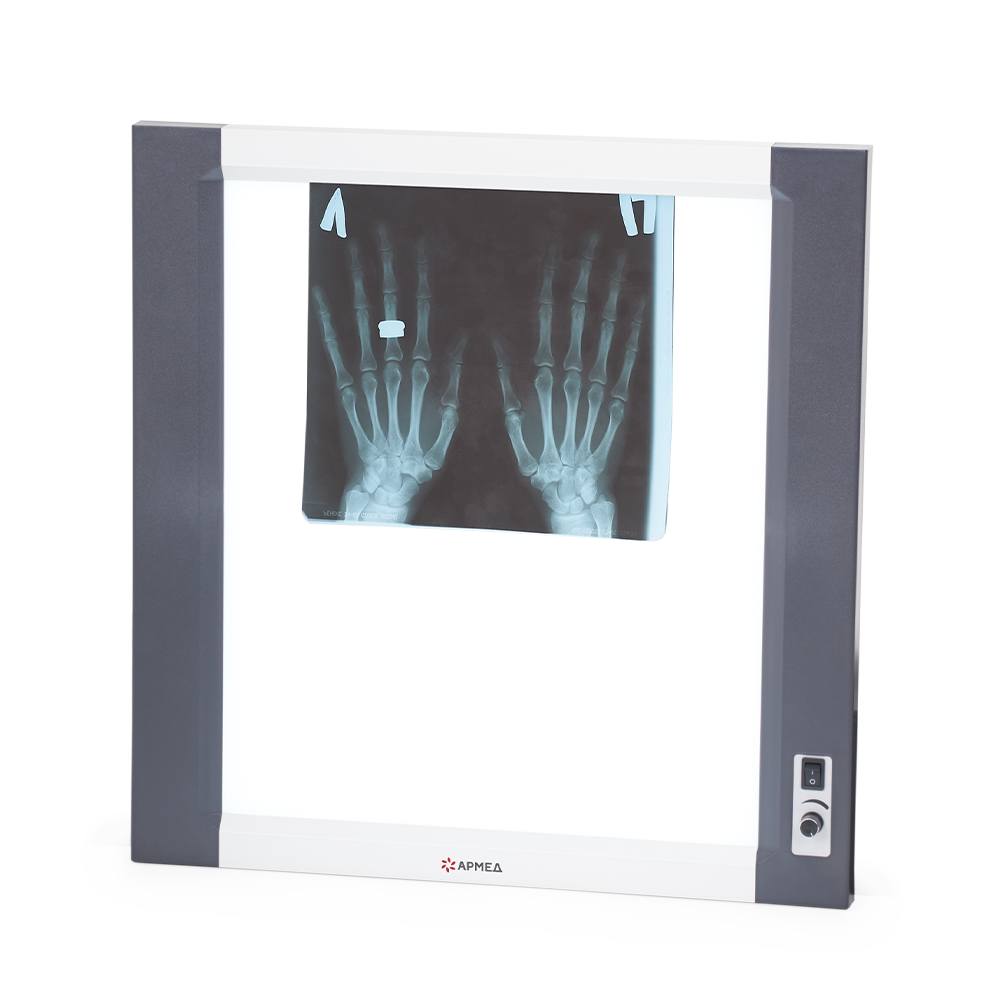 Негатоскоп общего назначения Армед 1-кадровый LUX – медицинский прибор для изучения рентгеновского снимка. Отличается тонким корпусом: его толщина составляет всего 3 см. В корпусе установлены 2 LED-линейки, обеспечивающие необходимое свечение. Смотровой экран из акрилового стекла равномерно рассеивает свет. Рентгенограмма легко устанавливается в пазы экрана для удобного просмотра.