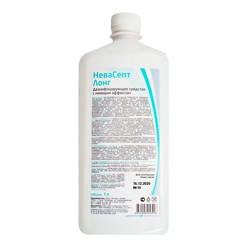 Средство НеваСепт Лонг обладает моющими свойствами, что позволяет совмещать дезинфекцию с мытьем в одном процессе, эффективно очищает поверхности из различных материалов от остатков косметических средств, выделений сальных и потовых желез, клеток эпидермиса. Обладает дезодорирующими свойствами, нейтрализует неприятные запахи (в т.ч. запах мочи, гнилостные запахи, запах плесени, посторонние запахи в помещениях с лежачими больными). Сохраняет свои свойства после замерзания и последующего оттаивания. Средство не вызывает коррозии металлов, не портит обрабатываемые объекты из нержавеющей стали, сплавов алюминия и других металлов, никелированных, хромированных защитных покрытий, лакокрасочных покрытий, резин, стекла, керамики, дерева, пластмасс, полимерных и других материалов, не обесцвечивают ткани, не фиксирует органические загрязнения.