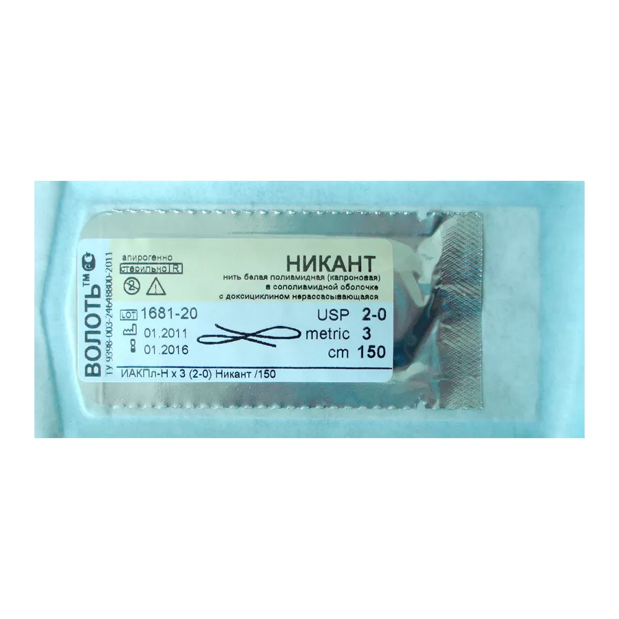 Нити Никант предназначены для применения в качестве шовного материала при различных оперативных вмешательствах, требующих использования нерассасывающихся нитей в различных областях хирургии, сопряженных с опасностью прямого или вторичного инфицирования швов. Нити обеспечивают улучшенное заживление операционных ран. Рекомендуются в условиях бактериальных загрязнений, при снижении иммунологической активности организма, при любых операциях в целях профилактики гнойных осложнений, в условиях чрезвычайных ситуаций и т.п. Использование данных нитей обеспечивает снижение частоты послеоперационных гнойных осложнений, уменьшение летальности, сокращение сроков лечения при гнойных и гнойно-септических заболеваниях. Особенно целесообразно применение данных нитей у онкологических и других больных с пониженным иммунологическим статусом. В каждом конкретном случае оперативного вмешательства выбор шовного материала определяется хирургом при наличии показаний в зависимости от вида операции и размера раны в соответствии с хирургическими методиками. Способ применения