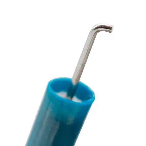 Нож эндоскопический поворотный L-типа с крюеообразной режущей частью с углом изгиба 90 градусов.