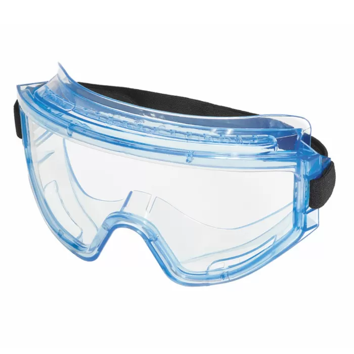 Очки герметичные с панорамным защитным стеклом из прозрачного материала с двусторонним незапотевающим покрытием, устойчивым к истиранию и царапанию, защита глаз от высокоскоростных летящих частиц со средне-энергетическим ударом. Устойчивы к растворам химических кислот и щелочей. Мягкий корпус из ПВХ пластика с широкой регулируемой наголовной лентой.