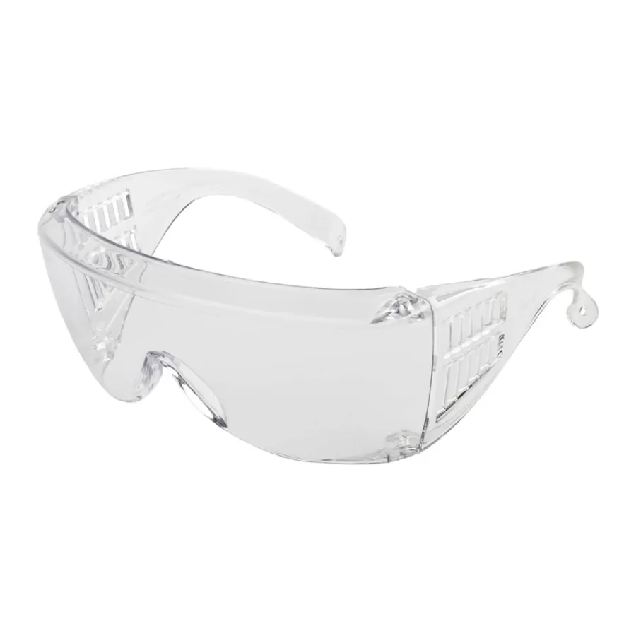 Современные легкие универсальные очки из поликарбоната с панорамным защитным стеклом прозрачного цвета, предназначены для защиты глаз спереди, сверху и с боков от механических воздействий, абразива, УФ-излучения.