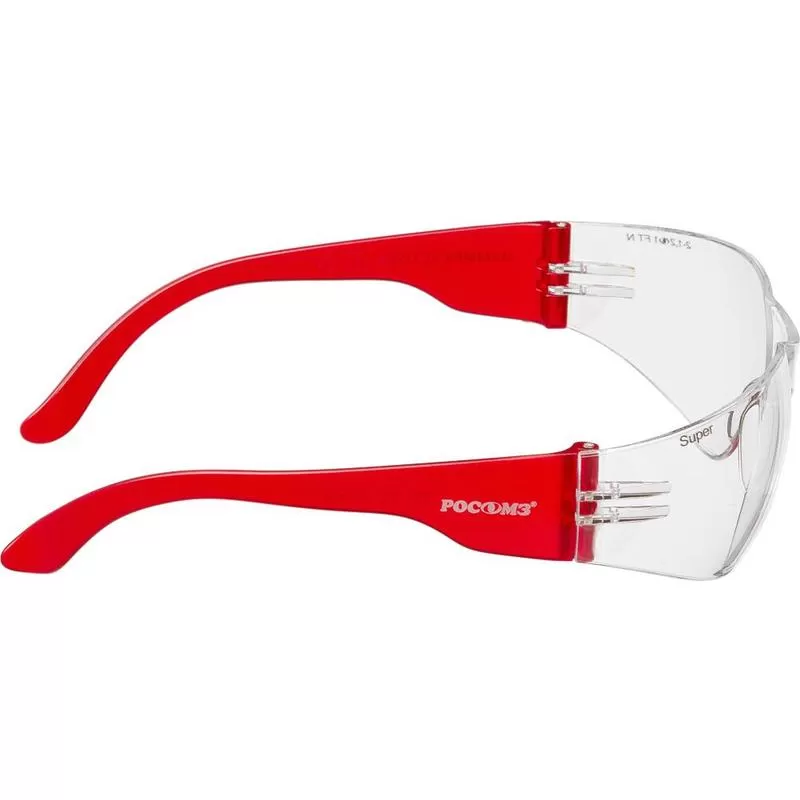 - Широкие заушники обеспечивают надежную защиту от твердых частиц.