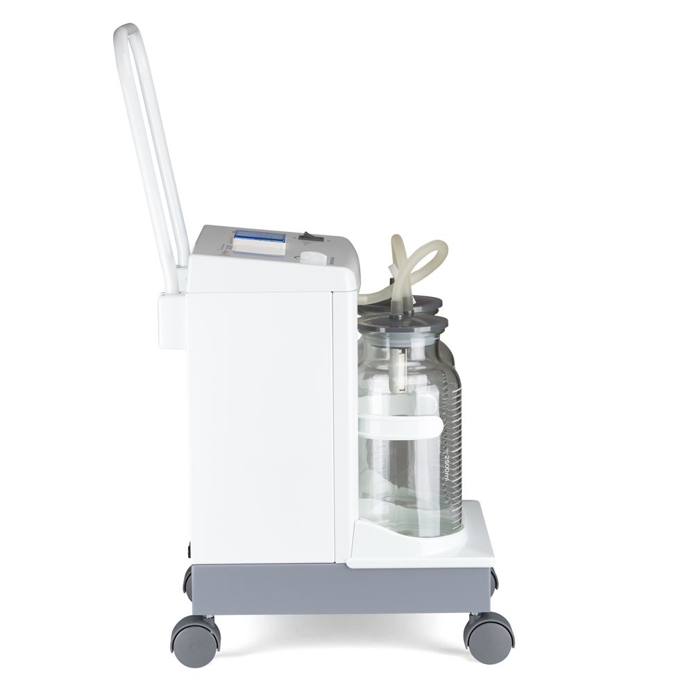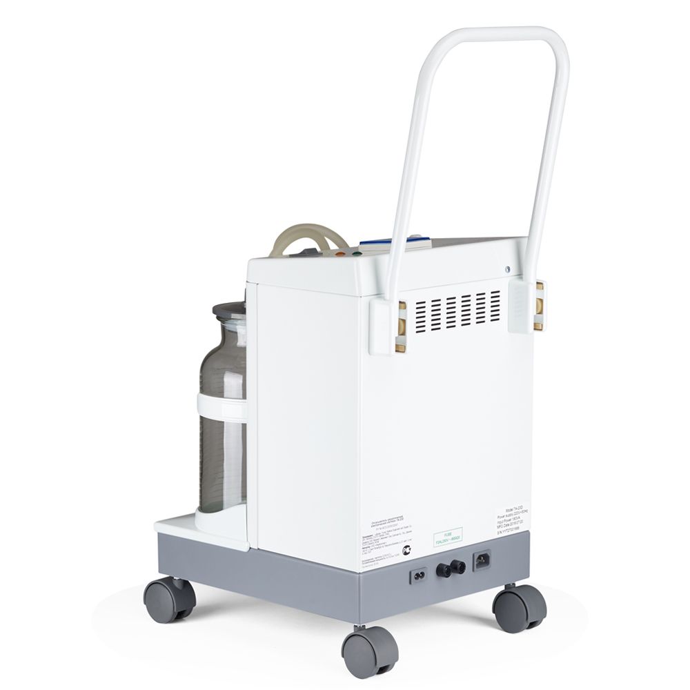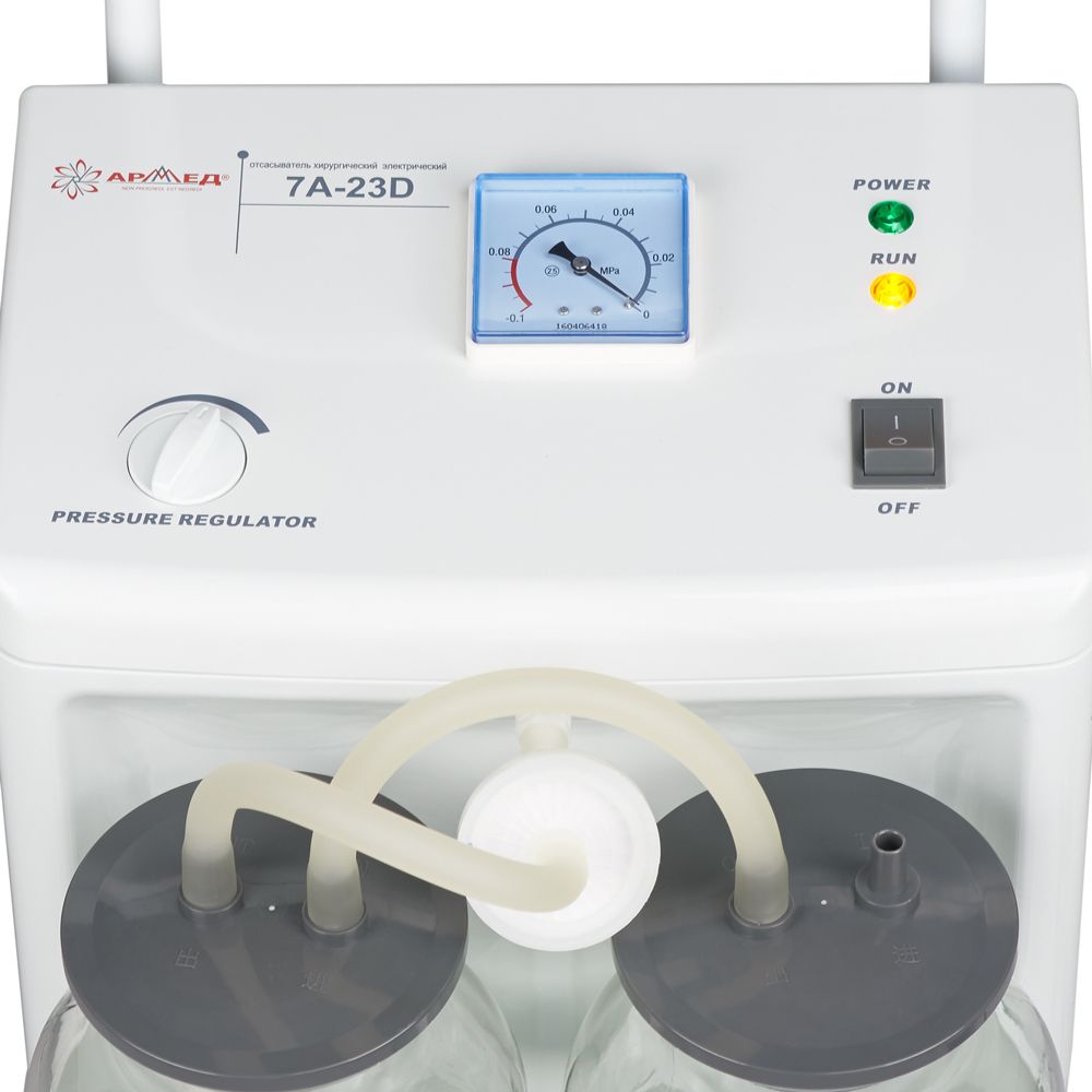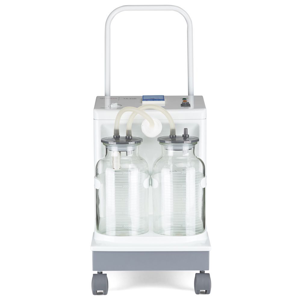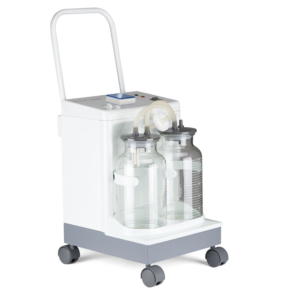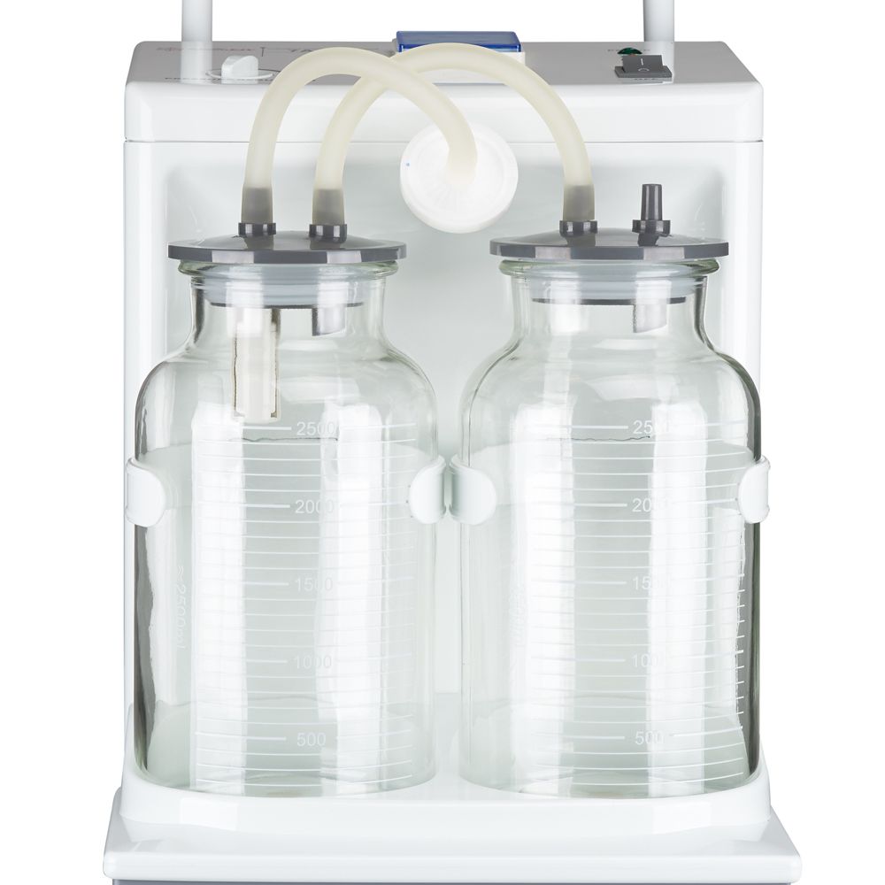 Хирургический аспиратор передвижного типа относится к числу наиболее популярного оборудования данного класса в РФ. Корпус аппарата выполнен из металла, а емкости - из стекла. На крышке одной из 2-х банок-сбоников размещен поплавок, который предотвращает перелив жидкости. В комплектацию дополнительно входит металлический наконечник, необходимый при проведении полостных операций. Для удобства перемещения аспиратор оснащен удобной ручкой и маневренными колесами. Модель привлекательна за счет качественного исполнения при доступной цене.