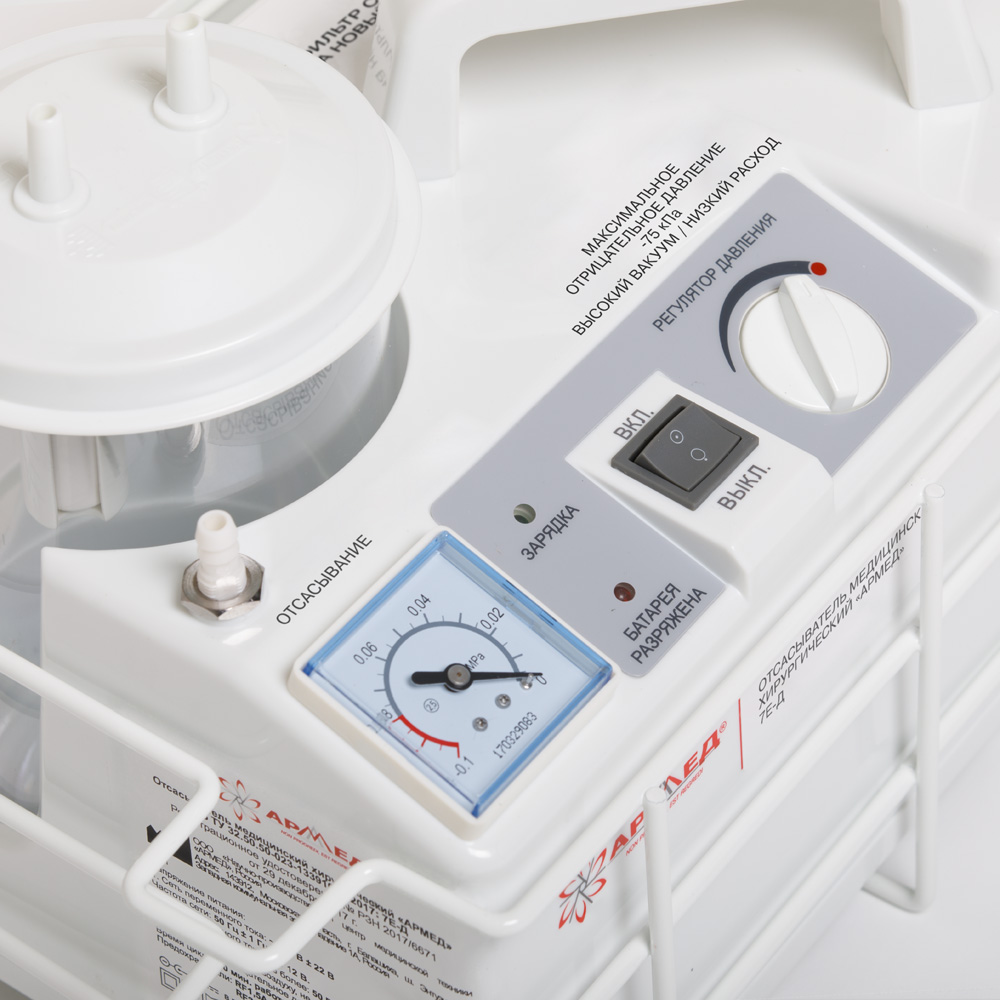 Медицинский отсасыватель российского производства с производительностью 15 л/мин, позволяющей быстро и эффективно удалять биологические жидкости. Сочетание компактных размеров, и достаточно высокой мощности выгодно выделяет эту модель среди аналогов, а возможность автономной работы расширяет сферу применения прибора.