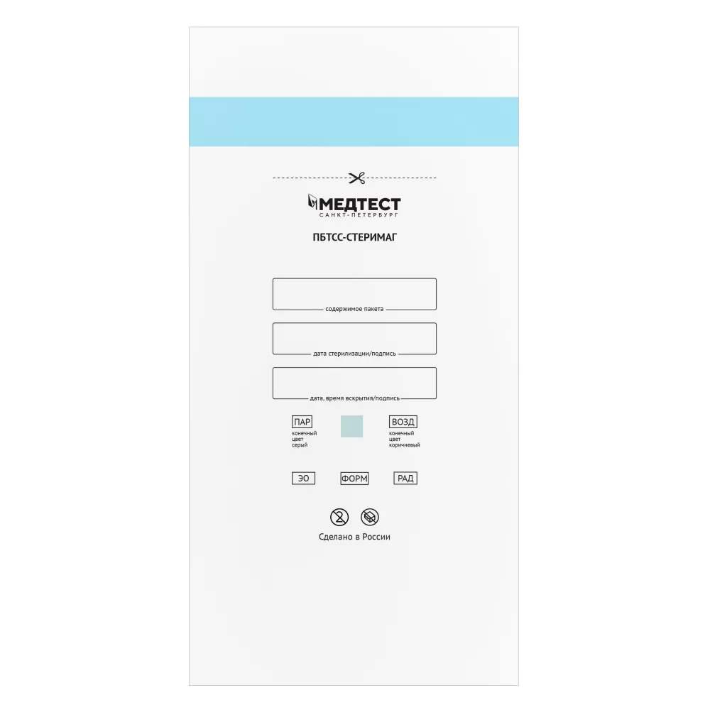 Пакет выполнен из влагопрочной бумаги с барьерными свойствами, с боковыми складками. Удобно применять для упаковывания объемных изделий. Швы клеевые, на пакет нанесен индикатор 1 класса для паровой и воздушной стерилизации. Герметизация методом термосваривания.