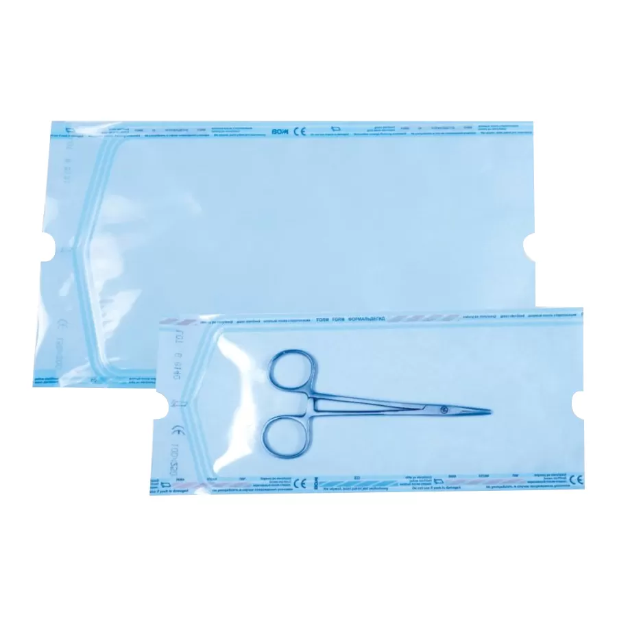 Бумажно-пленочная упаковка для стерилизации водяным паром (STEAM), оксидом этилена (EO) и формальдегидом (FORM). Материалы высокого качества и валидированный производственный процесс обеспечивают отличный эффект “peel” – асептического вскрытия упаковок. Это сводит к минимуму риск заражения стерильного изделия частичками целлюлозы, которые могут образоваться во время вскрытия бумажных упаковок. Химические индикаторы процесса стерилизации напечатаны на бумаге в области сварочного шва со стороны пленки вне области загрузки пакета. Изделия соответствуют требованиям норм EN 868-3, EN 868-5, EN ISO 11607-1, EN ISO 11607-2, EN ISO 11140-1.