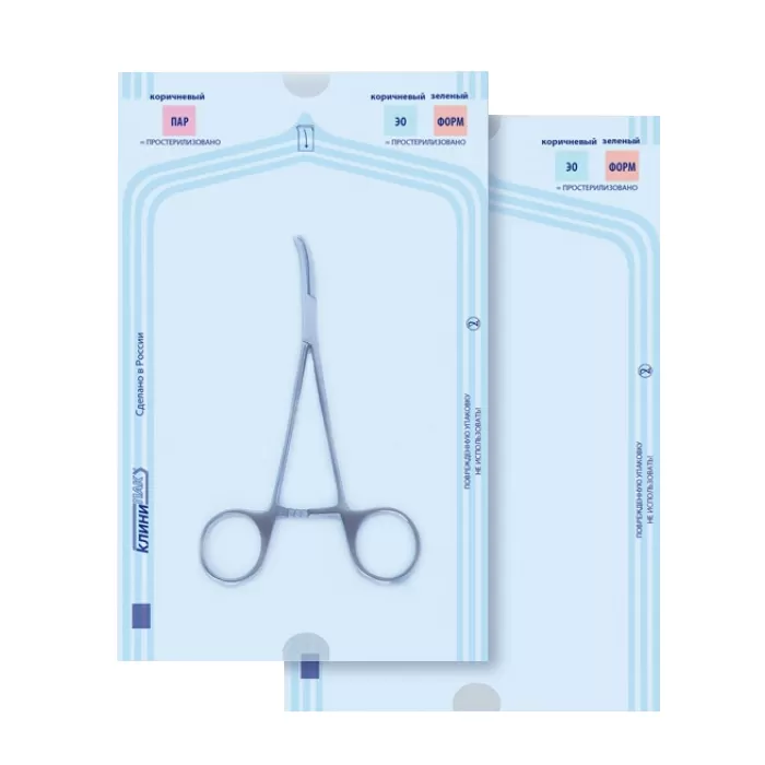 Пакеты плоские КЛИНИПАК представляют собой комбинированную упаковку различной ширины, состоящую из синтетической многослойной пленки и бумаги плотностью 60 либо 70 г/м2, и предназначенную для упаковывания небольших по толщине изделий. Метод стерилизации – паровой, газовый (формальдегид, окись этилена). Три индикатора стерилизации 1 класса, размер и название упаковки, ссылка на соответствие международным нормам и дополнительная информация расположены в зоне заводского термошва между плёнкой и бумагой на лицевой стороне вне зоны загрузки инструментов.