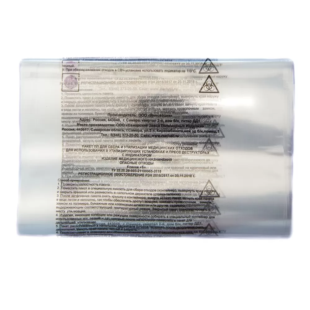 Прозрачный пакет с индикатором для автоклавирования медицинских отходов.