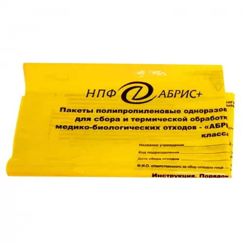 Пакеты полипропиленовые одноразовые с индикаторами стерилизации, для сбора и термической обработки (дезинфекции и утилизации) медико-биологических отходов.