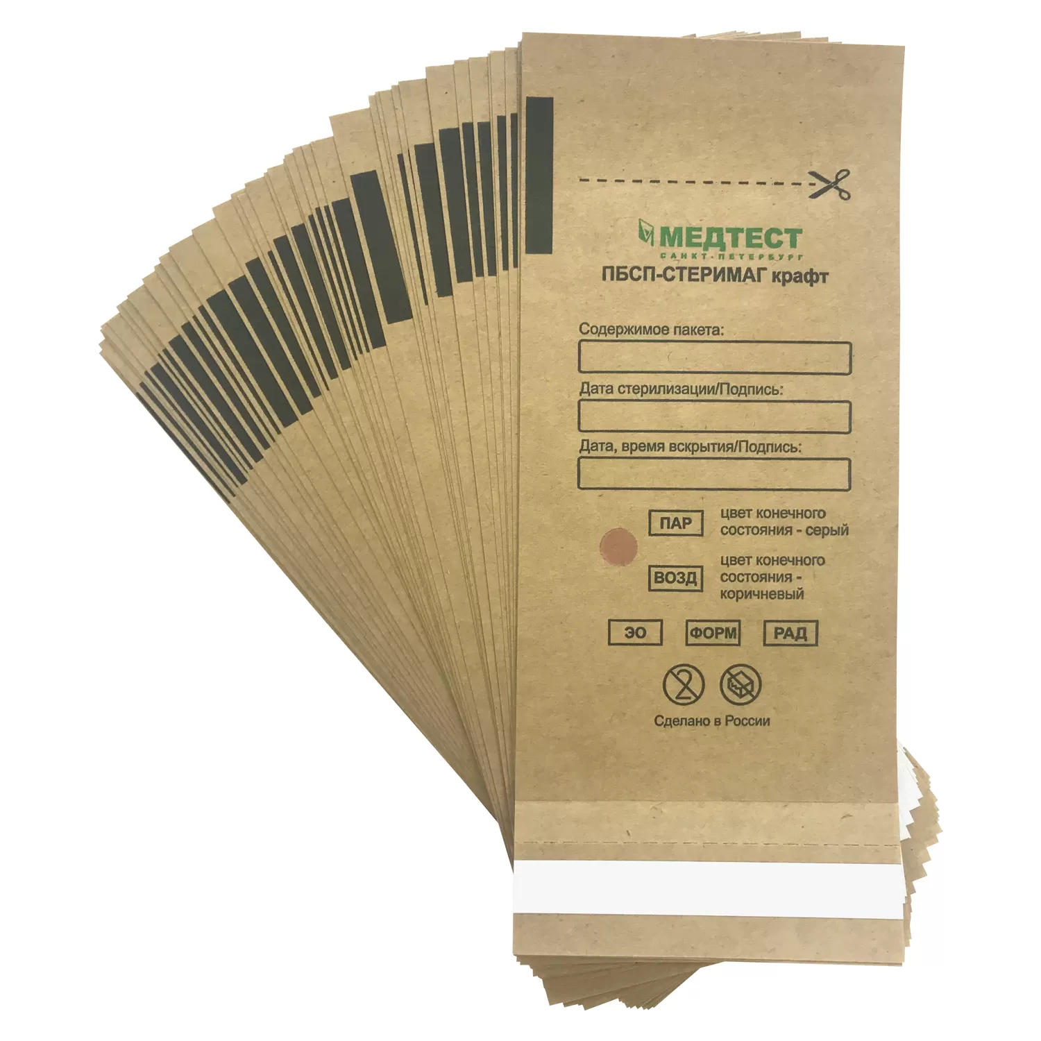 Пакеты для стерилизации из крафт-бумаги самозаклеивающиеся ПБСП-СтериМаг Медтест 100х250 мм 100 шт