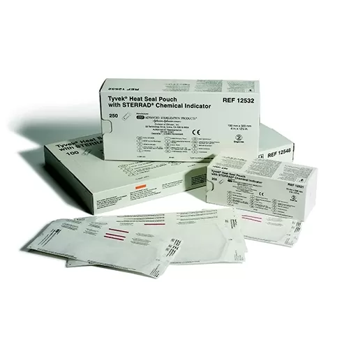 Упаковочные пакеты Tyvek имеют интегрированный химический индикатор STERRAD на обратной стороне или между двумя линиями термосклеивания по краям пакета.