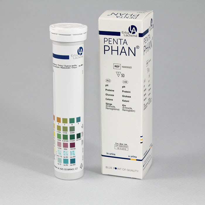 Тест-полоски ПентаФАН предназначены для качественного и полуколичественного определения содержания скрытой крови, кетонов, глюкозы, альбумина и рН в моче человека.