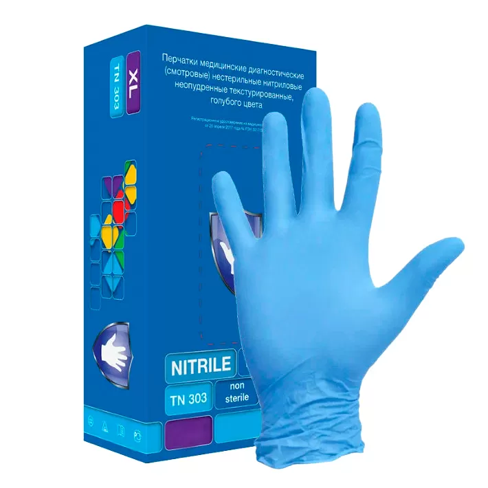 - Смотровые перчатки Safe&Care TN303 высокого качества из искуственного нитрила.
