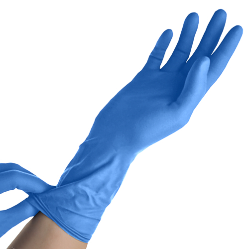 Удлиненная манжета (более 295 мм). Конструктивной особенностью является увеличенная длина перчатки, обеспечивающая дополнительную защиту предплечья. Это критически важно при работе с жидкими биологическими средами, дезрастворами и химикатами, исключая риск затекания жидкости под край перчатки. Удлиненная манжета повышает надежность антимикробного барьера и позволяет применять перчатки в условиях повышенного риска инфицирования.