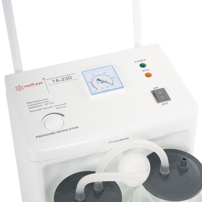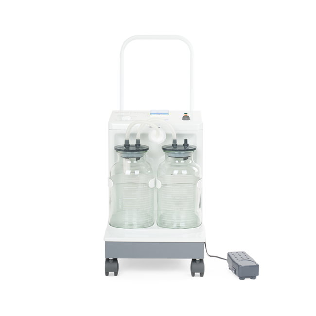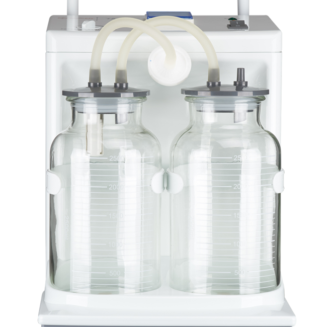 Крышка одной из 2-х стеклянных банок-сборников отсасывателя оснащена специальным поплавковым клапаном, предназначенным для защиты от перелива собираемой жидкости.