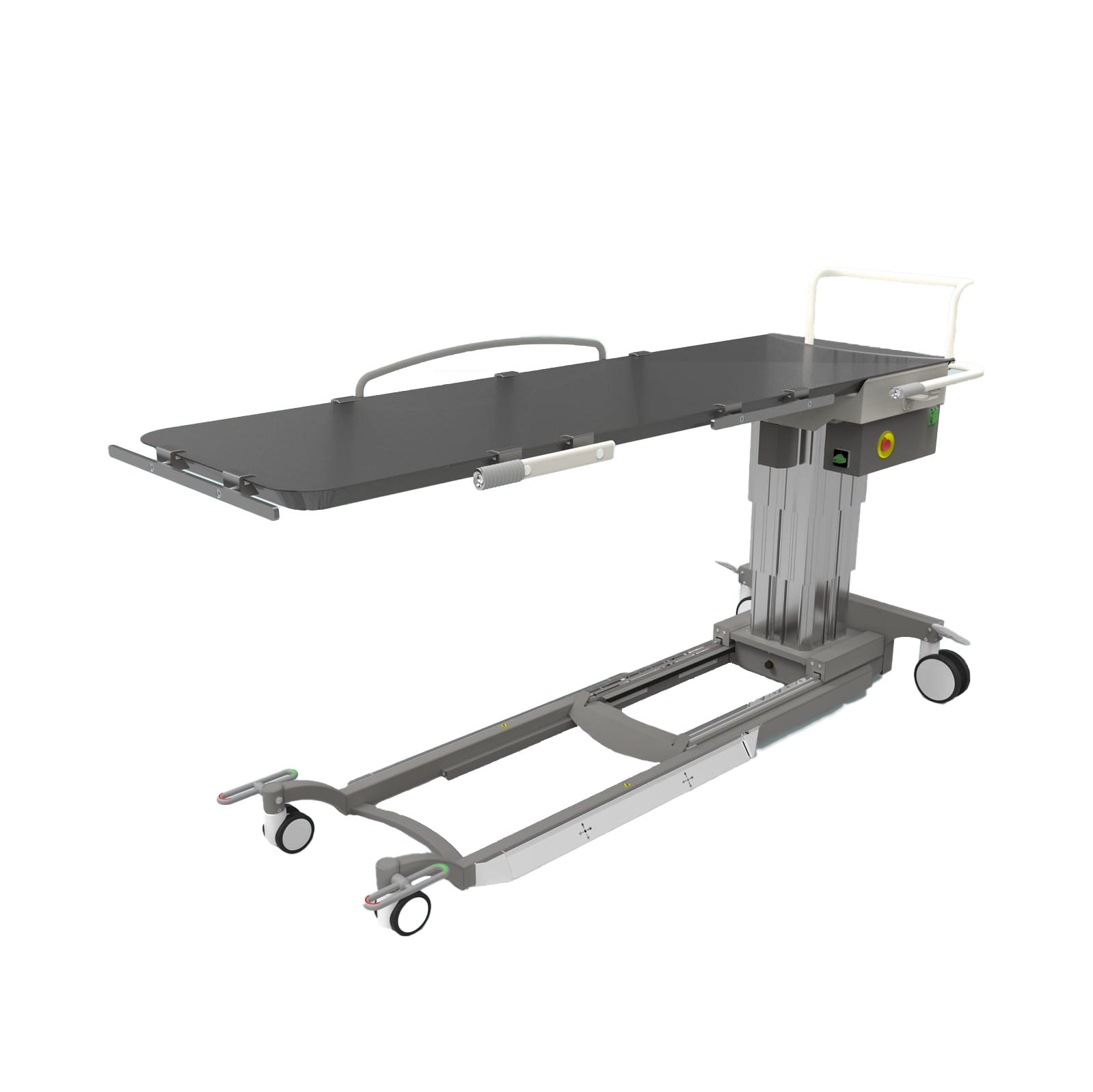 Передвижной рентгенопрозрачный стол X Mobil с односторонней подвеской и плавающей декой позволяет проводить обширные исследования пациентов без перекрытий и артефактов, свободно перемещая детектор под столешницей. Для удобного позиционирования пациента используются опции моторизированной регулировки высоты деки стола и продольного наклона в положение Тренделенбурга. Самоориентирующиеся колеса с тормозами обеспечивают высокую мобильность стола. Карбоновая безрамочная столешница выдерживает нагрузку до 250 кг и имеет обширную рентгенопрозрачную область.