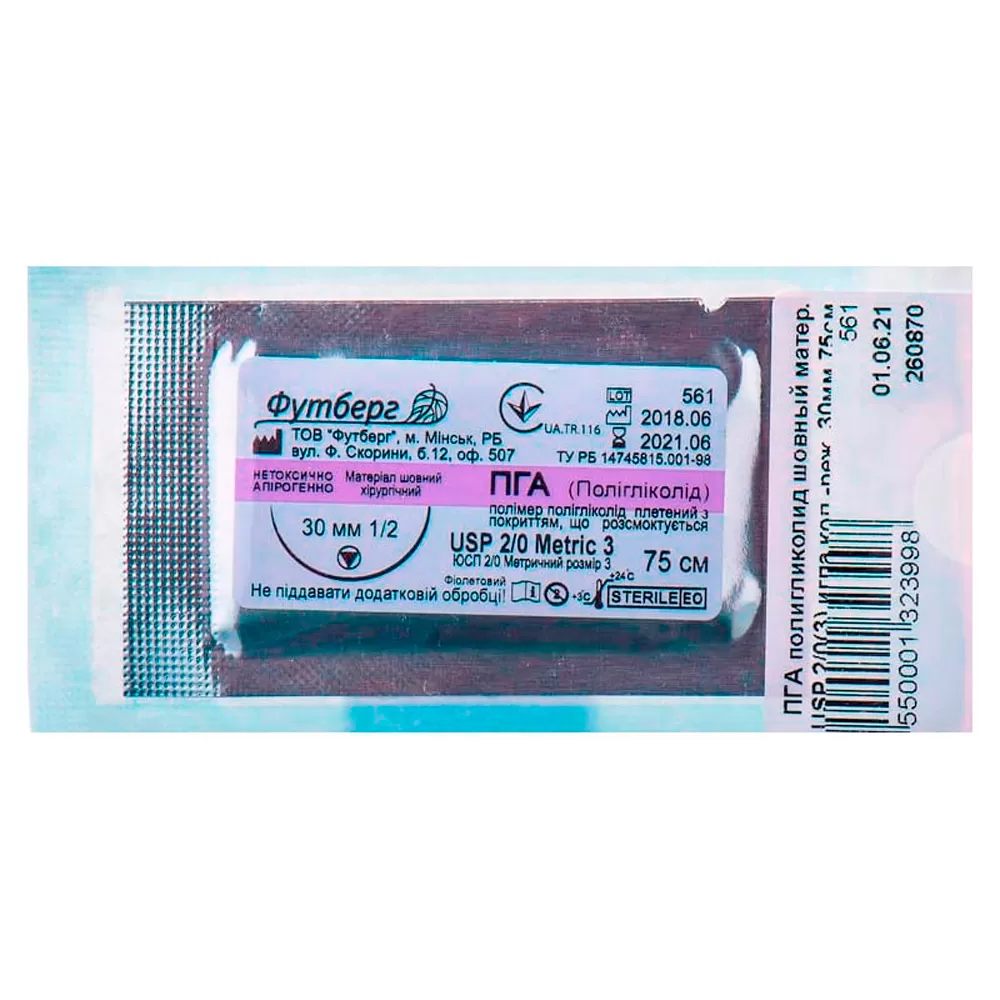 ПГА Полигликолид 0(3,5) 75 см колюще-режущая игла 35 мм 1/2 12 шт