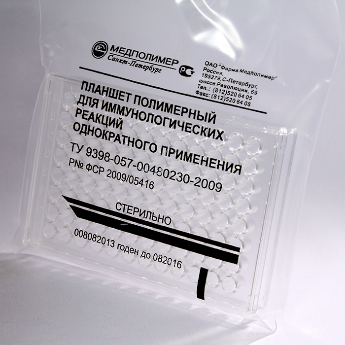 Планшет иммунологический, 96 лунок х 0.3мл, круглодон. с крышкой, стерильный, шт.