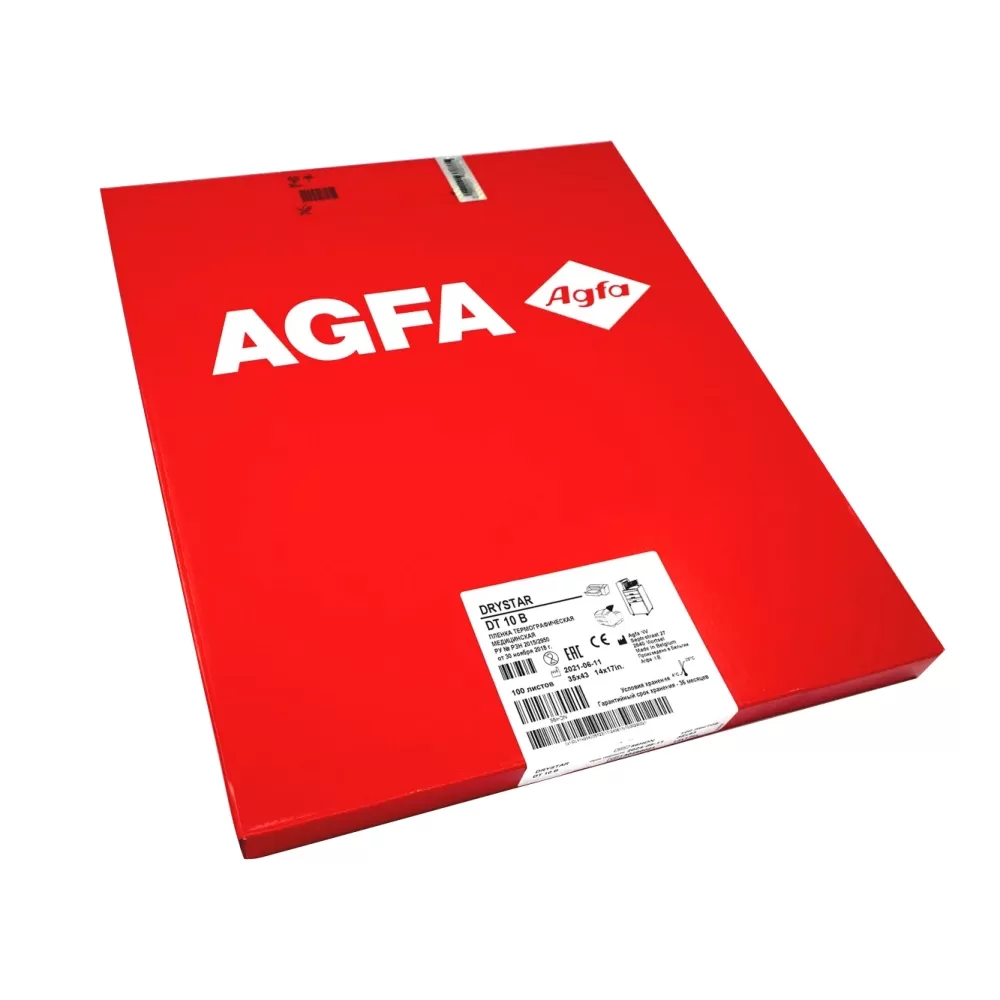 - Рентгеновская пленка Agfa DT10B 35x43(14х17_) представляет медицинскую пленку для печати медицинских изображений. Например, рентгеновских изображений конечностей или внутренних органов пациентов.