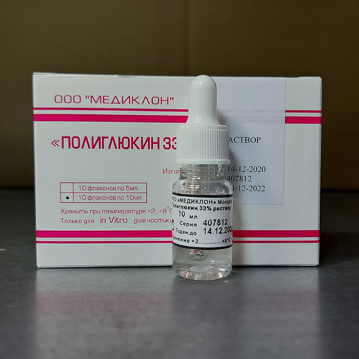 Набора реагентов Раствор полиглюкина 33% для определения антигенов и антител системы Резус крови человека предназначен для обнаружения антител к донорским эритроцитам при постановке пробы на совместимость в «полиглюкиновом тесте».