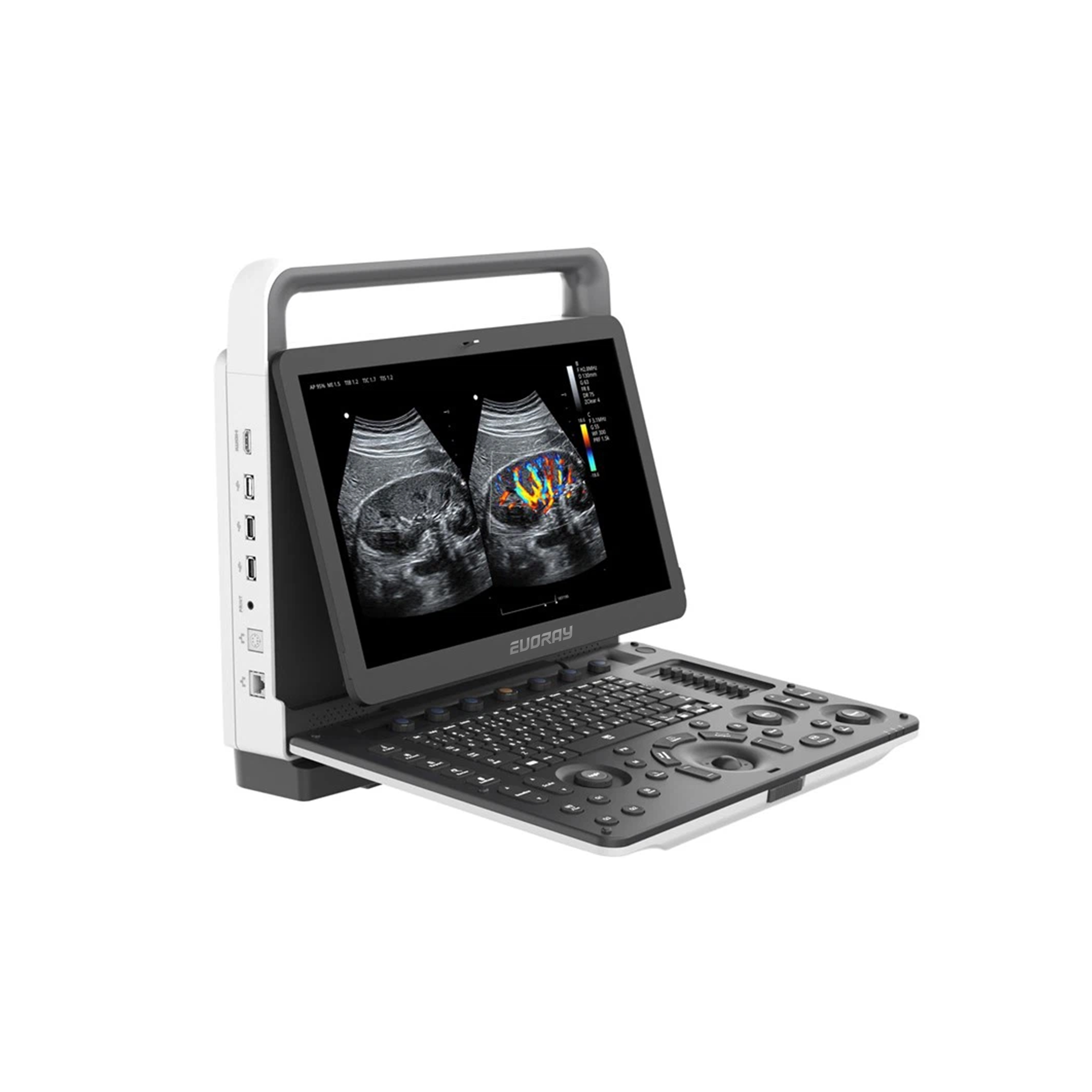 EVORAY USP 70 выполнен в формате компактной портативной консоли массой около 7 кг с широкой диагональю экрана и вместительным хранилищем 1 Тб. Аппарат предназначен для эксплуатации в стационарных, амбулаторных и мобильных условиях, благодаря своему акценту на стабильность работы, воспроизводимость результатов и удобство повседневного использования.