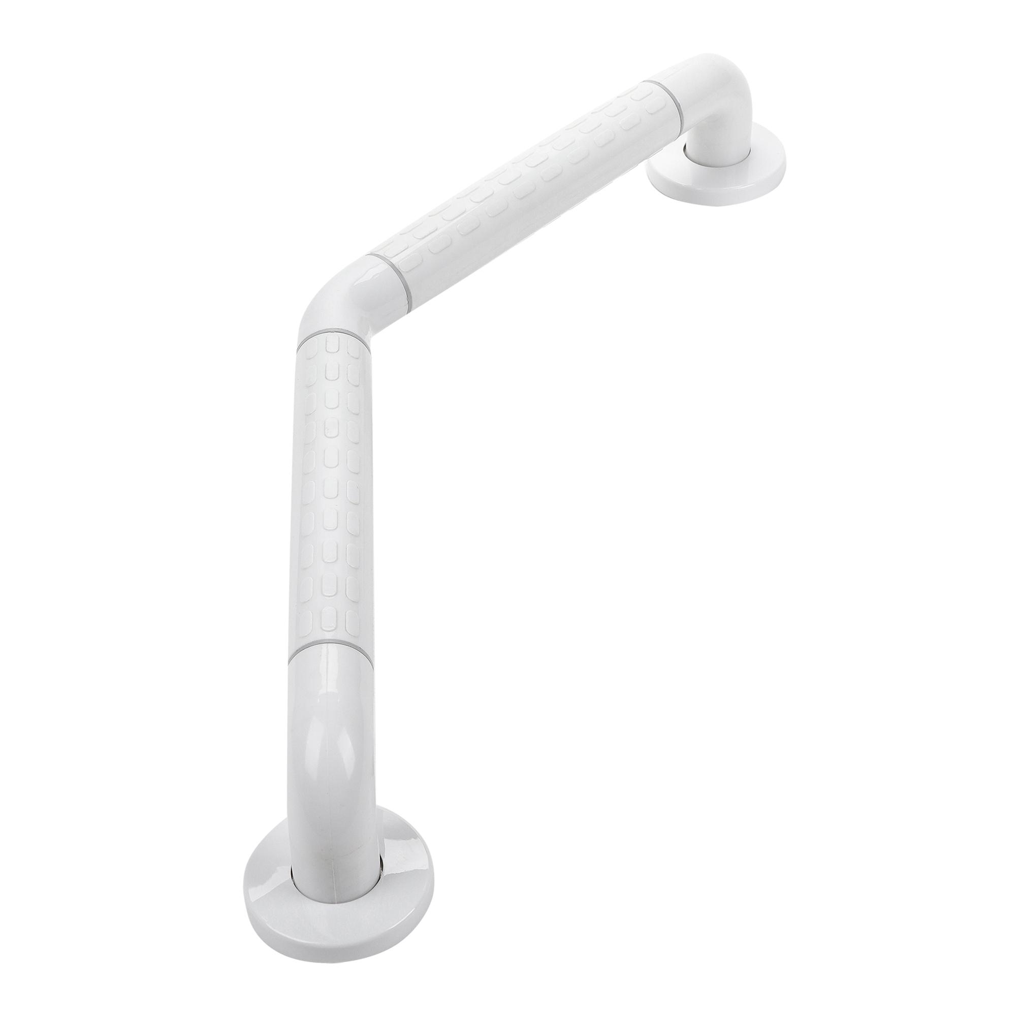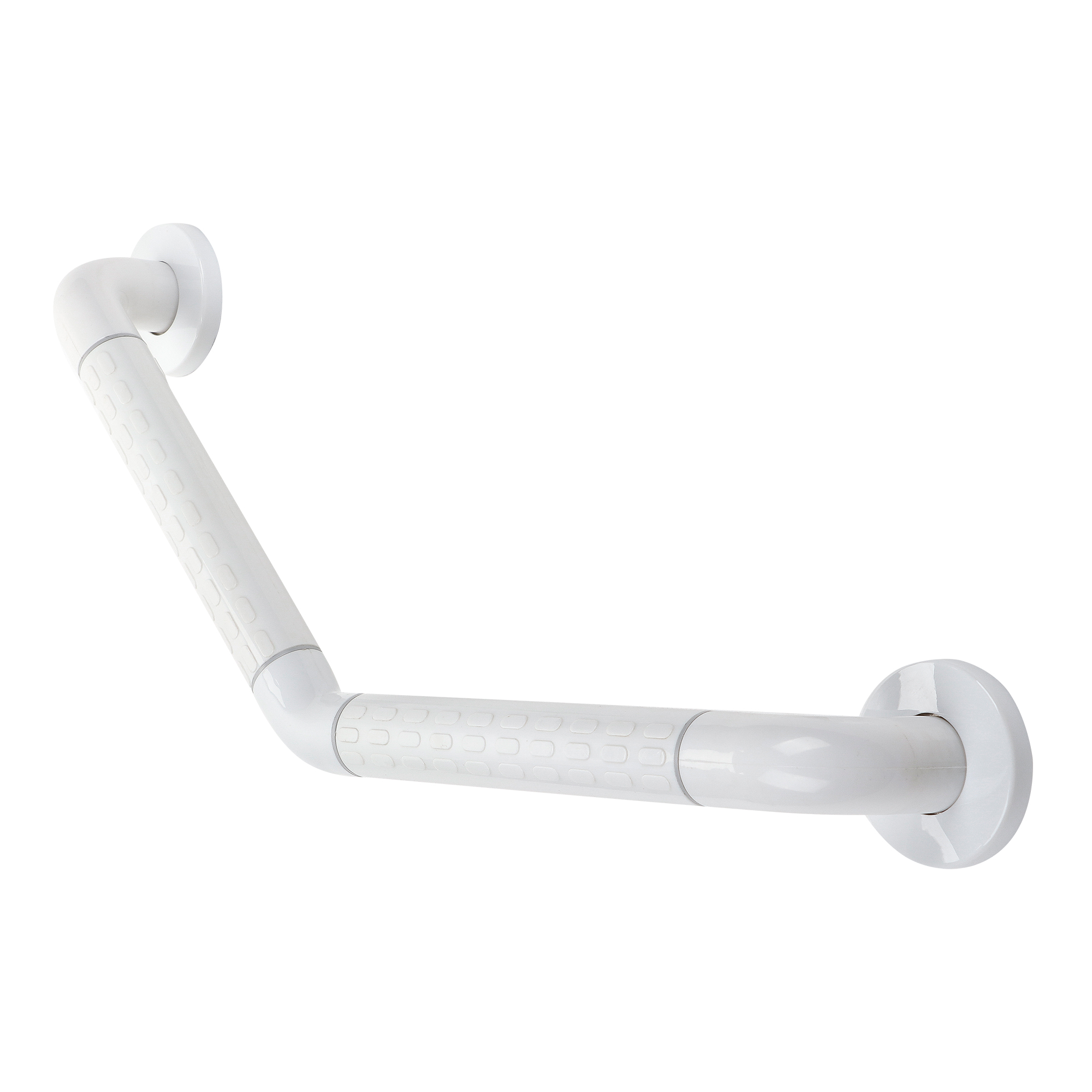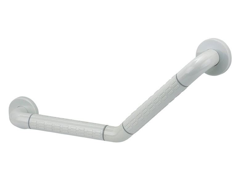Угловой настенный поручень с нестандартным углом соединения для монтажа на плоские стены. Оптимальное решение для помещений со сложной геометрией, обеспечивающее безопасность и комфорт при передвижении.