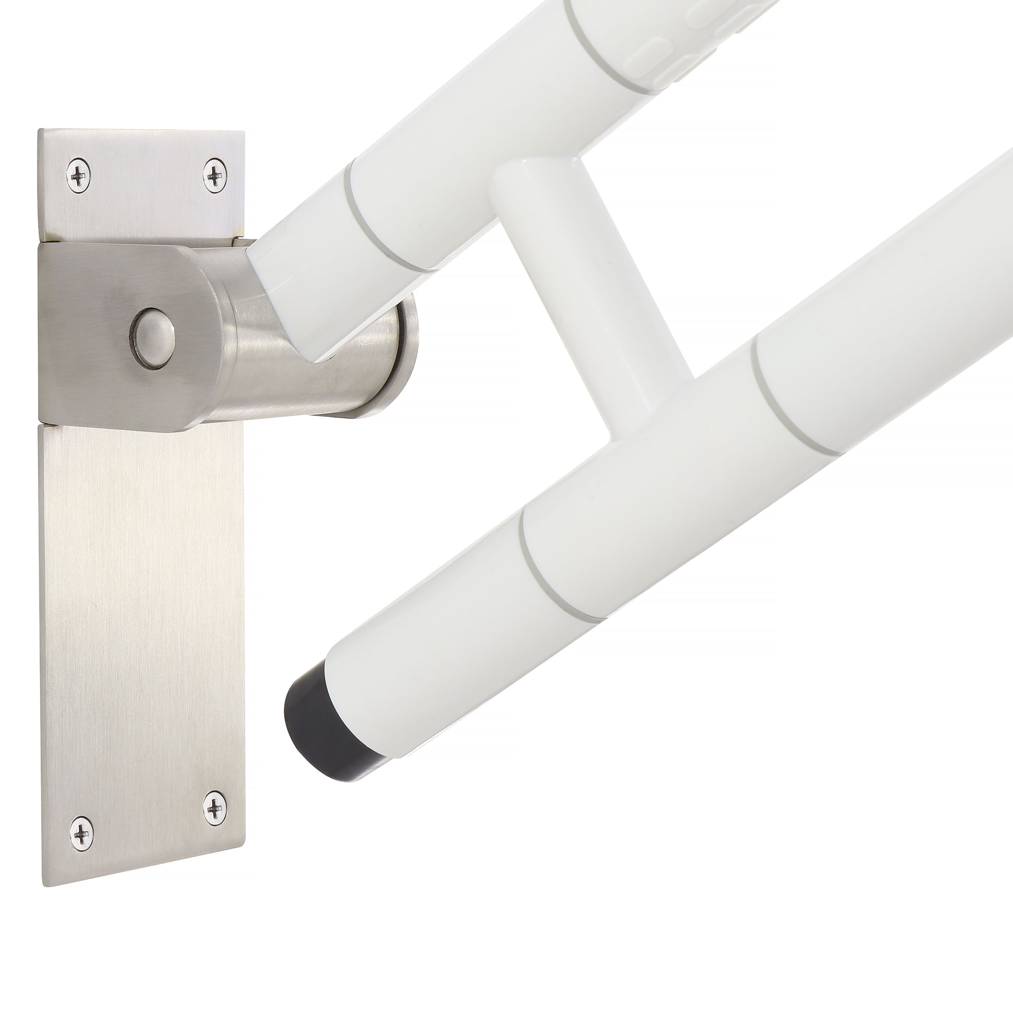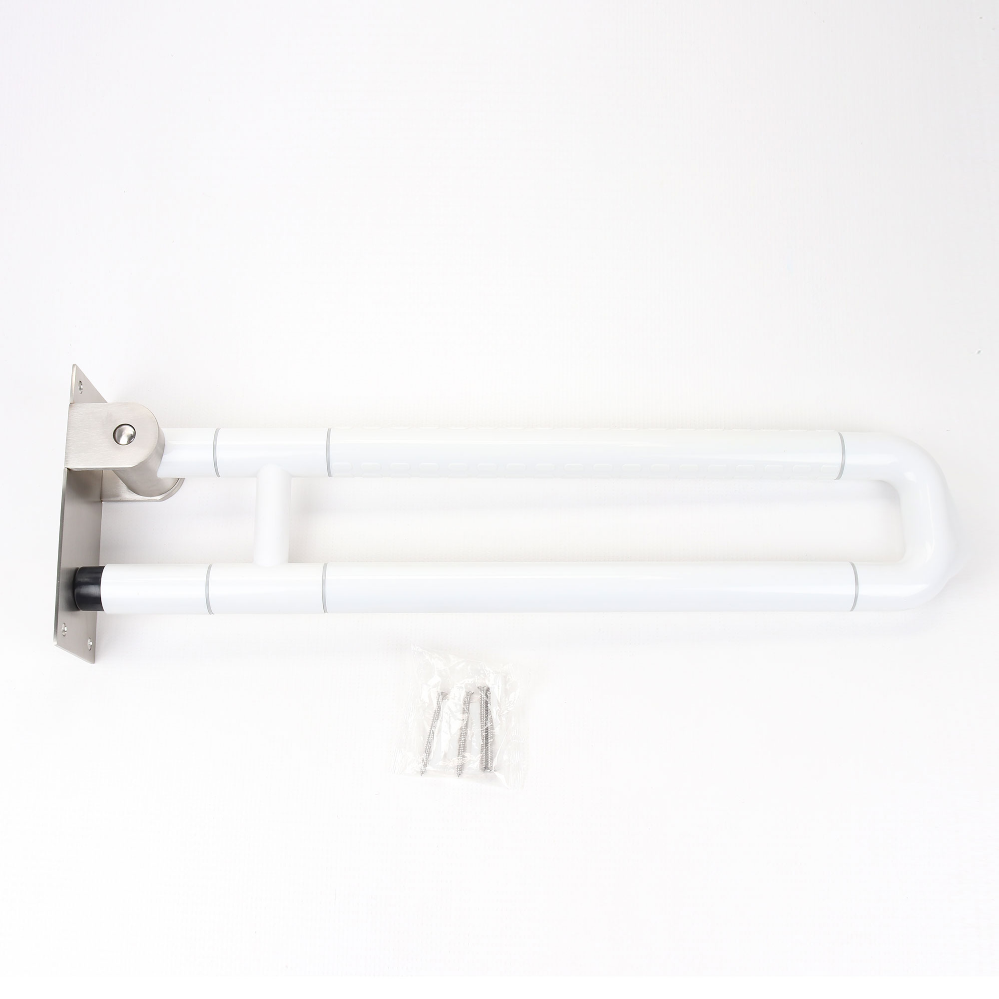 Поручень предназначен для настенного монтажа. Конструкция откидная, обеспечивает удобство использования и компактность в сложенном состоянии.