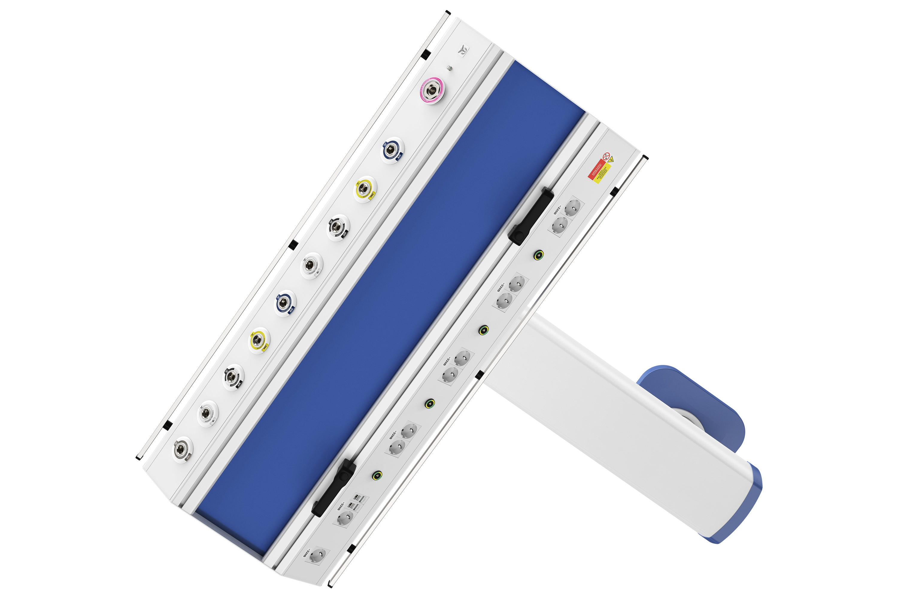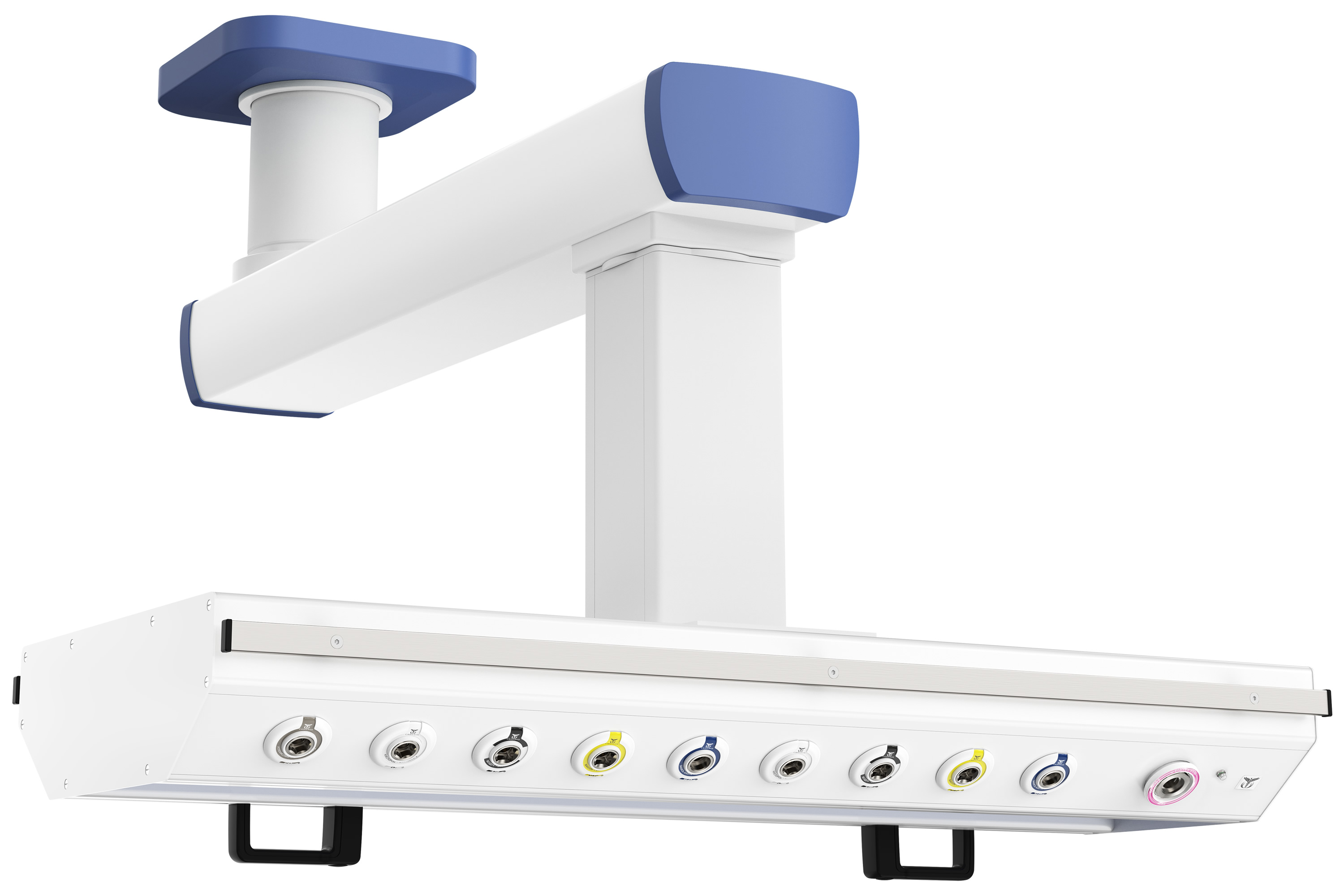 с вращающимся горизонтальным шкафом источников медицинского газоснабжения обеспечивает подачу медгазов и электропитания непосредственно к рабочему месту медицинского персонала. Поворотное плечо длиной до 1200 мм обеспечивает мобильность консоли, что позволяет облегчить доступ к пациенту и оптимизировать рабочее пространство.